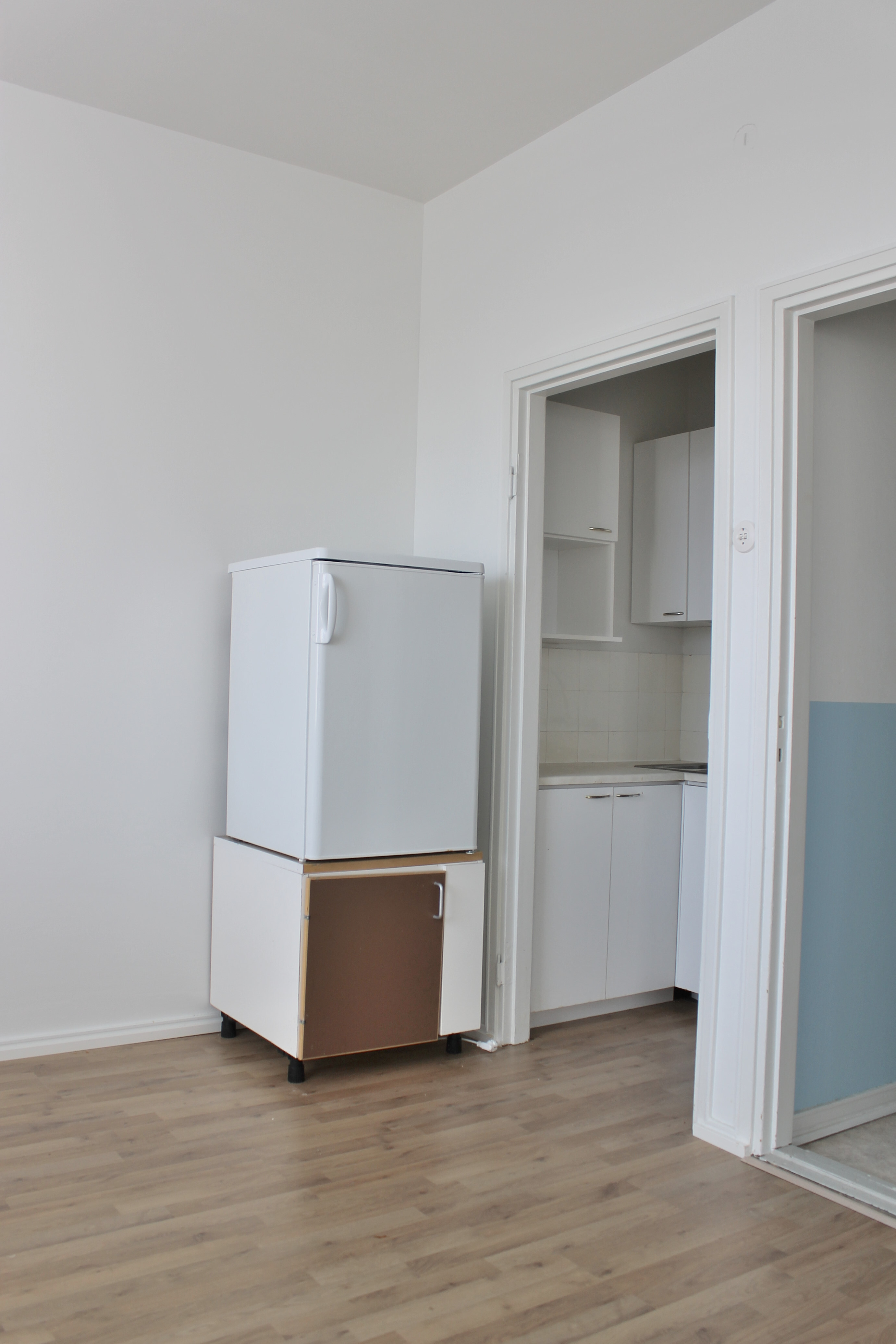 | Kuvaus | Maalatut seinäpinnat, laminaattilattia. Keittokomeron yhteydessä ruokailutila. Varustusteena jääkaappi (uusittu kuvien oton jälkeen), sähköliesi ja kaapistot. |