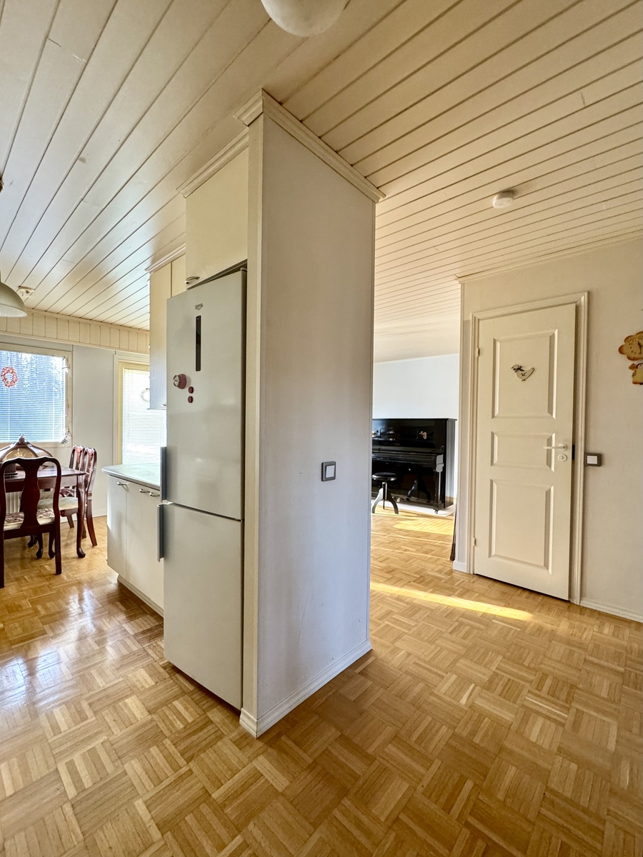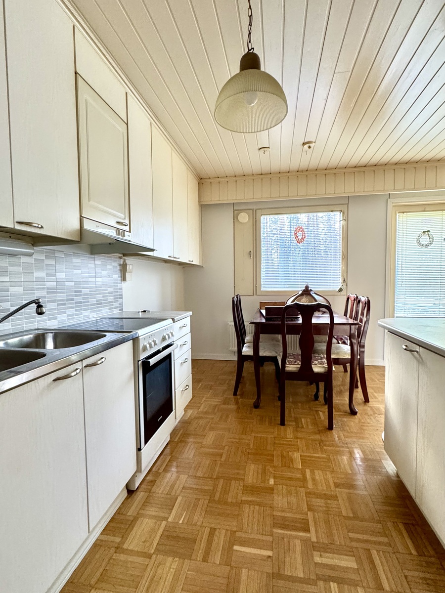 | Kuvaus | Seinäpinnat maali/tapetti. Lattia parkettia. Varusteina jääkaappi/pakastin, keraaminen liesi, liesituuletin ja astianpesukone. |