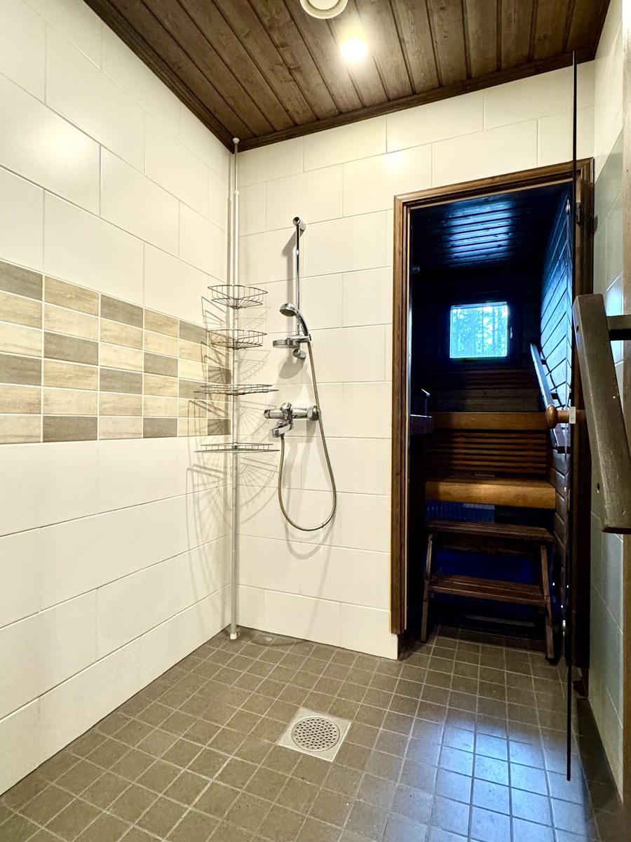 | Kuvaus | Kylpyhuone remontoitu v. 2014 (ollut vähällä käytöllä). Kaakeloidut seinät, laattalattia. Varustuksena suihku, lattialämmitys. Erillinen pukuhone/khh, jossa pyykinpesukoneliitäntä. |
