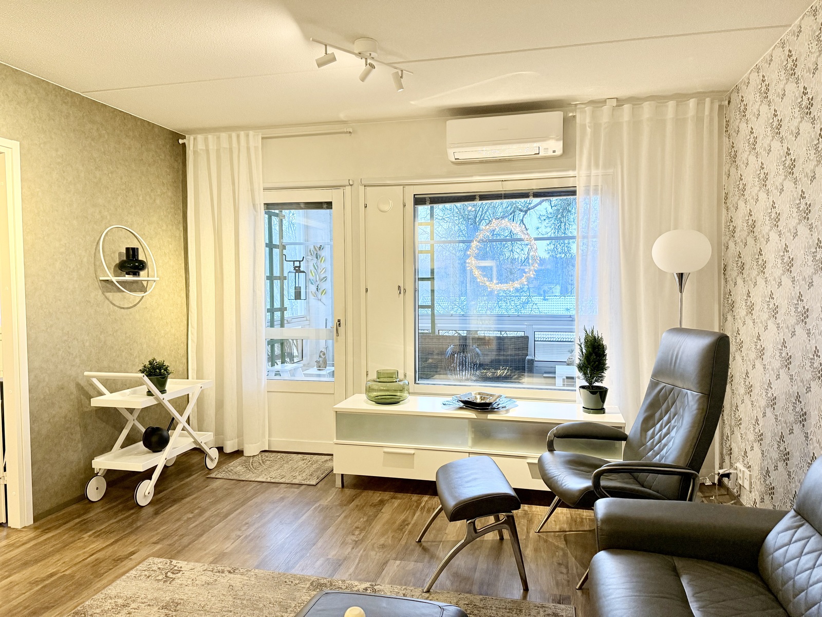 Kaunis, laadukkaasti remontoitu, ylimmän asuinkerroksen huoneisto vuonna 1990 valmistuneesta taloyhtiöstä. Huoneistoon on tehty täydellinen remontti v.2015; mm. kaikki asuintilojen pinnat ja säilytyskalusteet, keittiön kalusteet ja koneet, pesu- ja saunatilat kalusteineen uusittiin. Reilunkokoinen lasitettu parveke. Ilmalämpöpumppu takaa miellyttävän lämpötilan myös kesähelteillä. Rauhallinen, hoidettu, kaukolämmössä oleva taloyhtiö. Loistava sijainti lähellä rantaa ja kaupungin keskustaa. Tyylikäs, erittäin siistikuntoinen koti, johon pääset muuttamaan ilman remontin vaivaa. Varaa aika kiireettömään esittelyyn, tutustu ja ihastu.