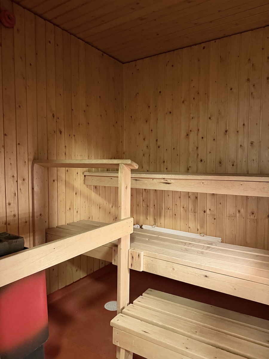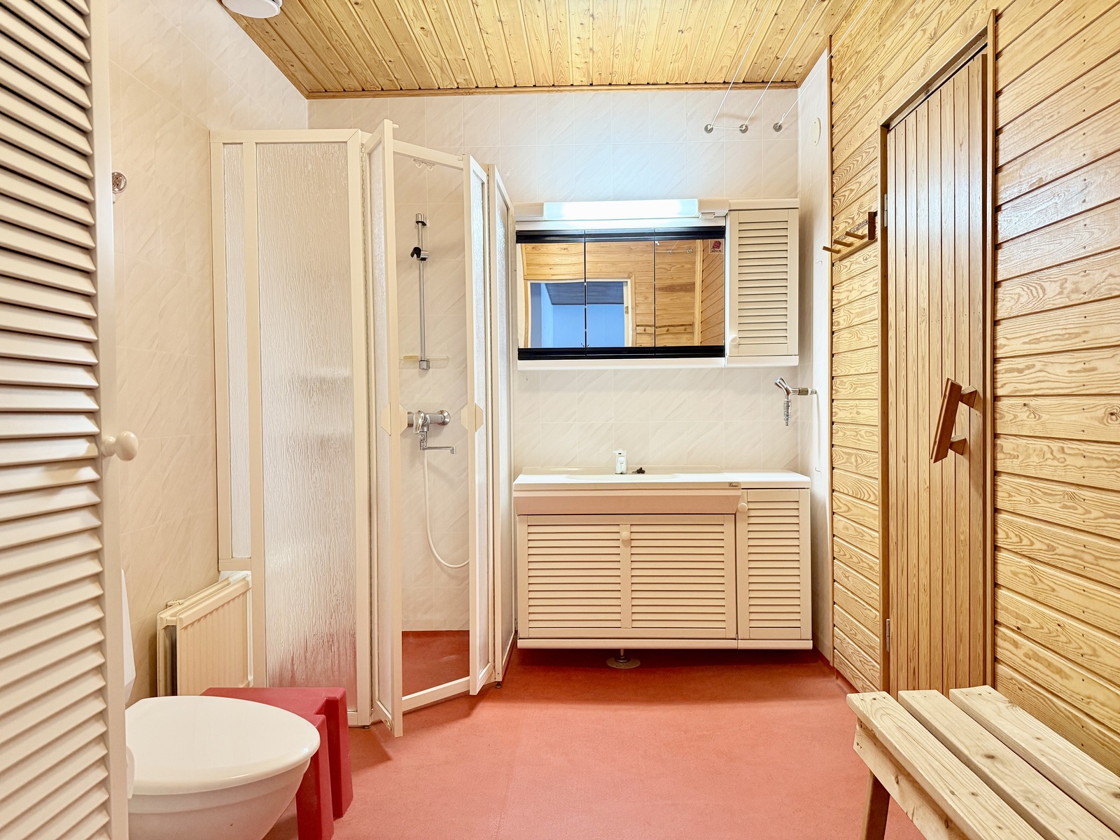 | Kuvaus | Saunassa paneloidut seinät ja muovimattolattia. Sähkölämmitteinen kiuas. |