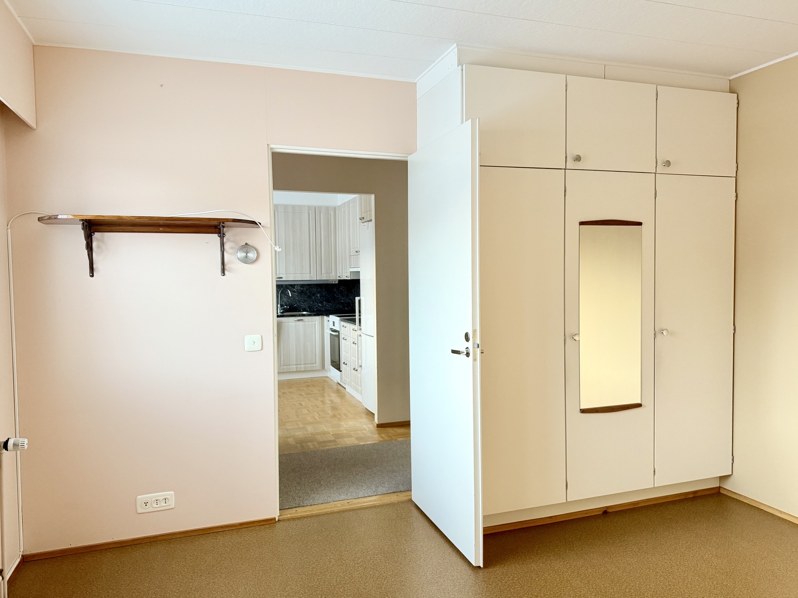 | Kuvaus | Toisen makuuhuoneen seinät tapetoitu, muovimattolattia. Vaatehuone. Toisessa makuuhuoneessa osa seinistä maalattu, osassa ns. sisustuslevy. Muovimattolattia. Kaapistoja. |