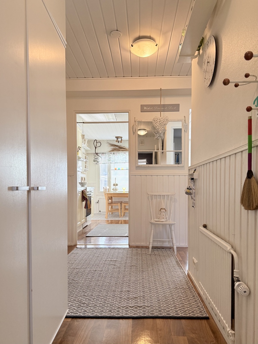 | Tilojen kuvaus | Eteisen seinissä puolipanelointi, yläosa maalattu. Kaapistoja. |