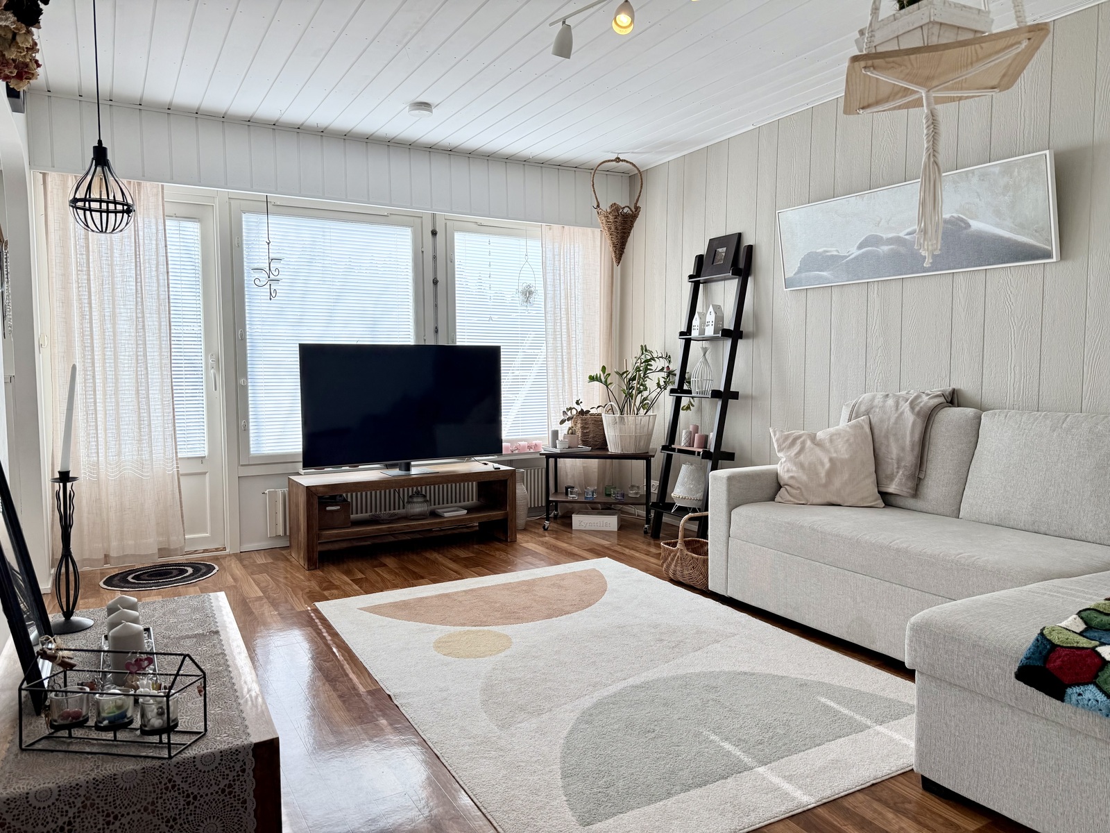 Valoisa, vaaleasävyinen rivitalohuoneisto Käpykankaalta, vuonna 1974 valmistuneesta taloyhtiöstä. Keittiössä vaaleat, siistikuntoiset kaapistot. Reilunkokoinen kylpyhuone ja tunnelmallinen sauna. Erillinen wc. Olohuoneesta käynti aidatulle, aurinkoiselle takapihalle. Hoidettu, kaukolämmössä oleva taloyhtiö, johon uusittu mm. lämmönvaihdin, vesikate, ikkunat ja takaovet, ulkoverhous ja käyttövesiputket. Kodikas asunto, johon voit muuttaa ilman välitöntä remonttitarvetta.