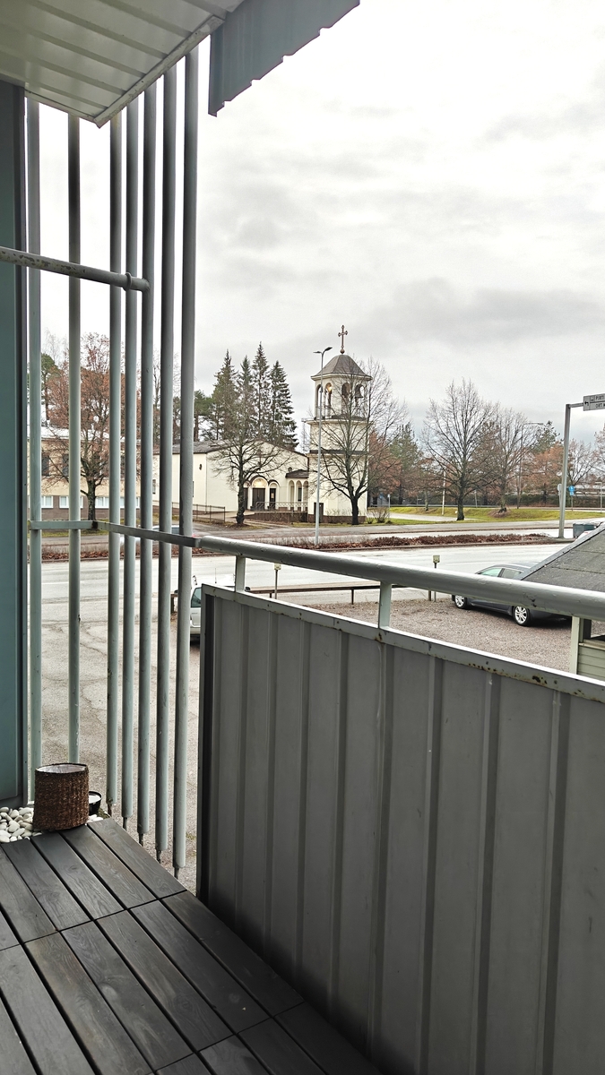 | Kuvaus | Olohuoneesta käynti parvekkeelle. Maalatut seinäpinnat, laminaattilattia. |