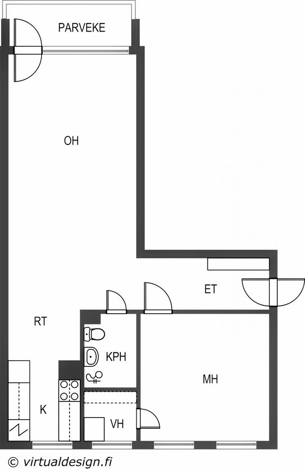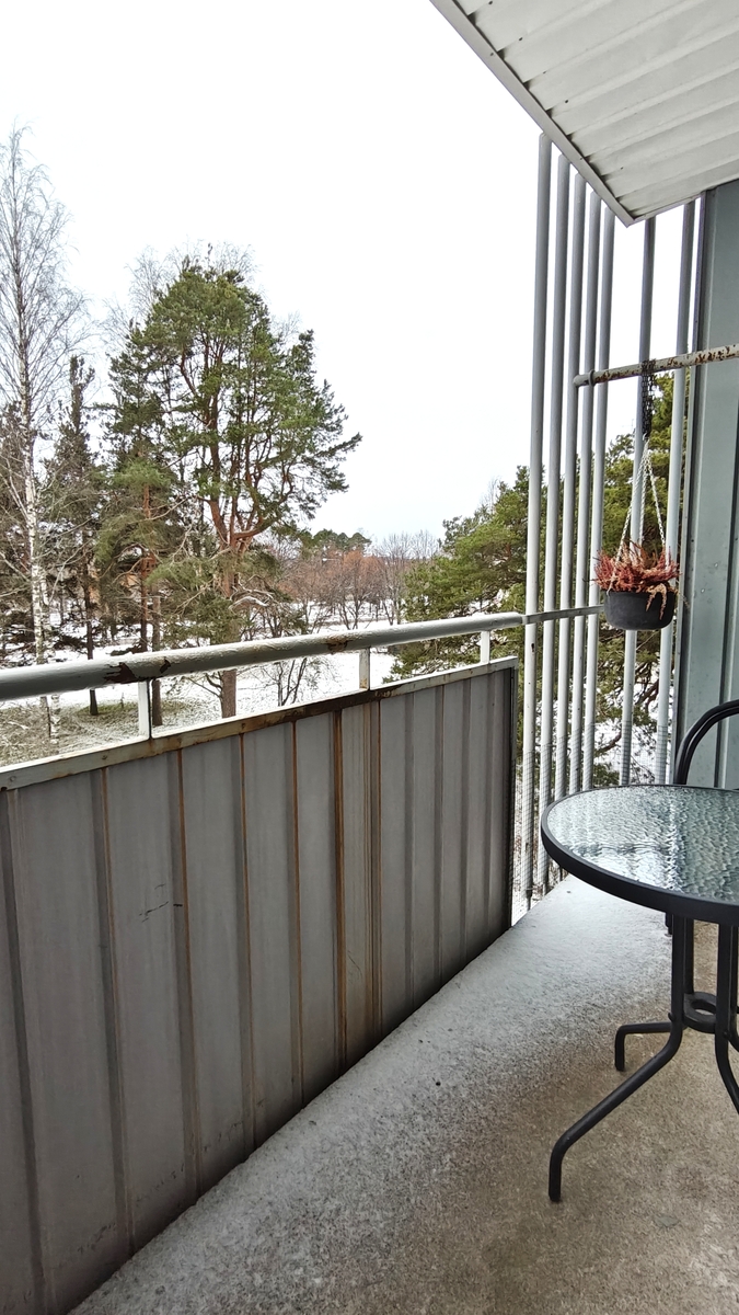 | Kuvaus | Olohuoneesta käynti parvekkeelle. Maalatut seinäpinnat, vinyylilankkilattia. |