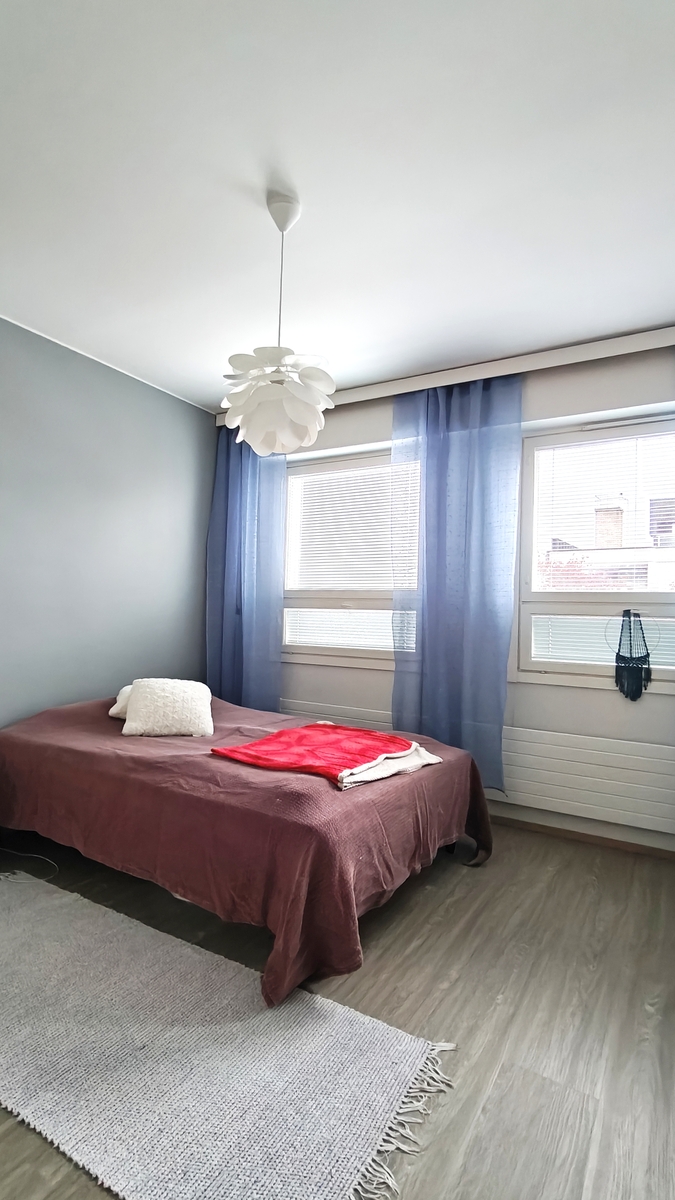 | Kuvaus | Maalatut seinäpinnat, vinyylilankkulattia. Makuuhuoneen yhteydessä vaatehuone. |