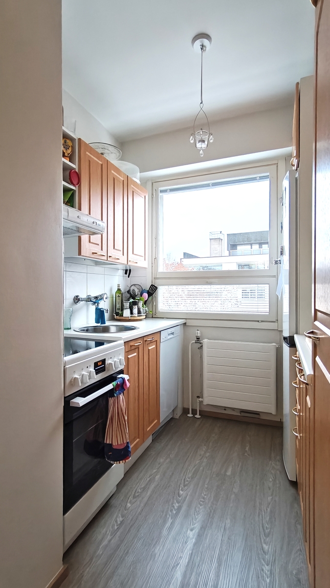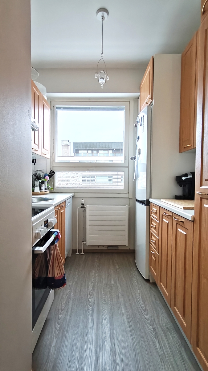| Kuvaus | Maalatut seinäpinnat, vinyylilattia. Varusteina jääkaappi/pakastin, keraaminen liesi, liesituuletin ja astianpesukone. |