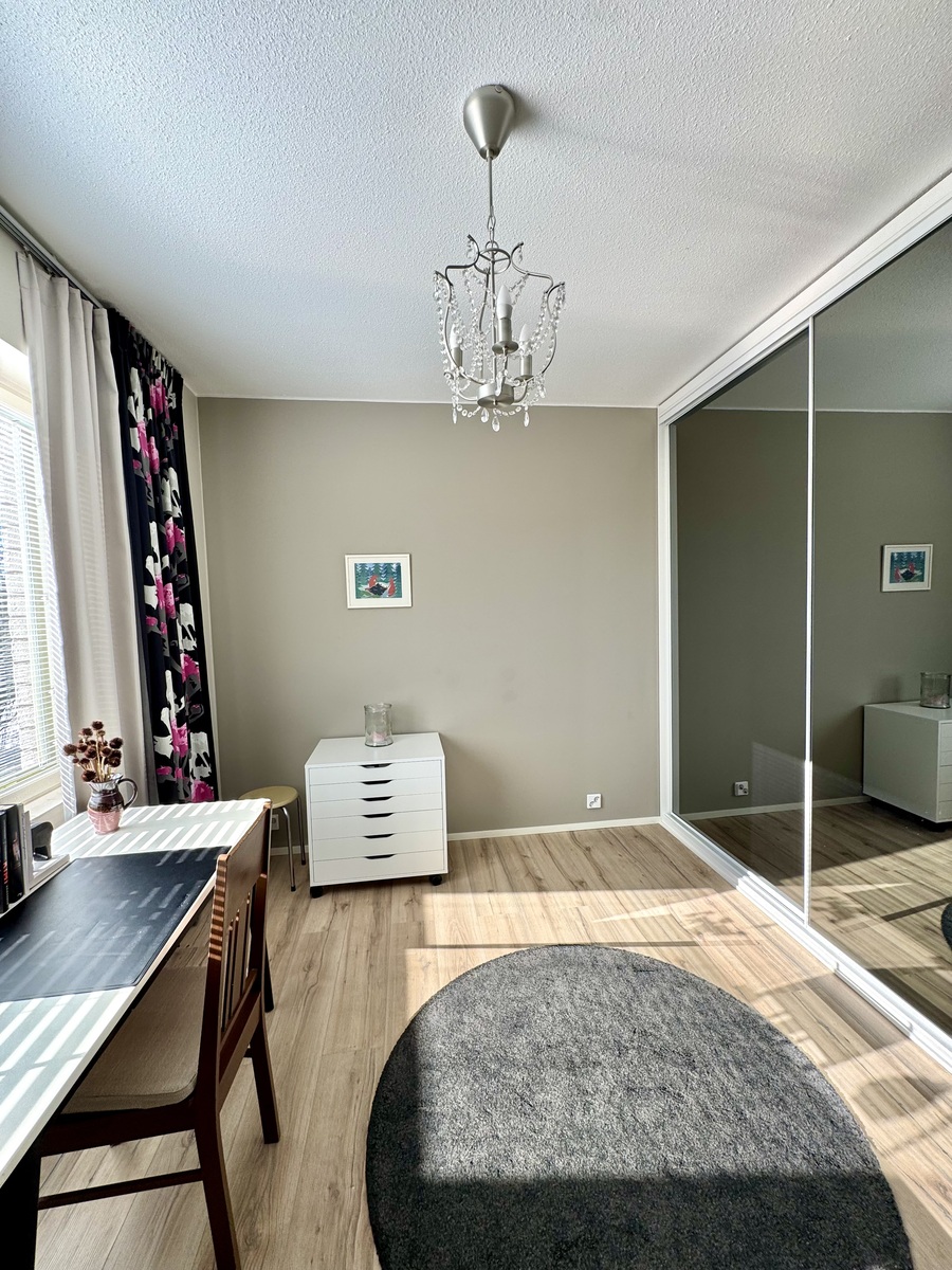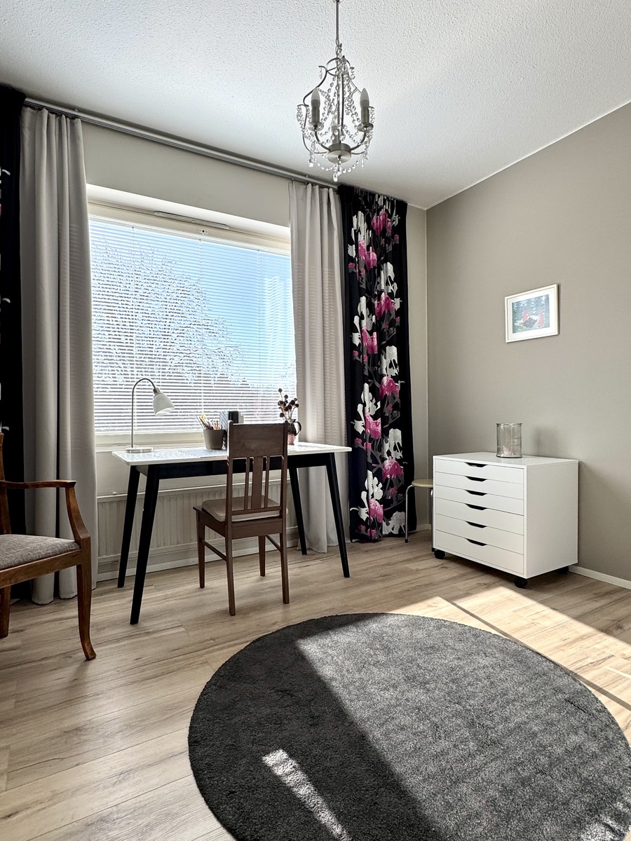 | Kuvaus | Kaksi erillistä makuuhuonetta. Molemmissa hyvin kaapistoa säilytykseen. Huoneiden pinnat ja kaapistot uusittu v. 2013. Lattiat laminaattia. Toisen makuuhuoneen seinät tapettia, toisen maalattu. |