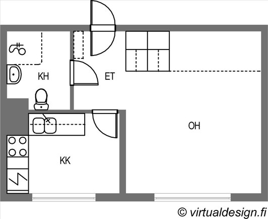 | Kuvaus | Olohuoneen yhteydessä alkovi. Maalatut seinäpinnat, laminaattilattia. |