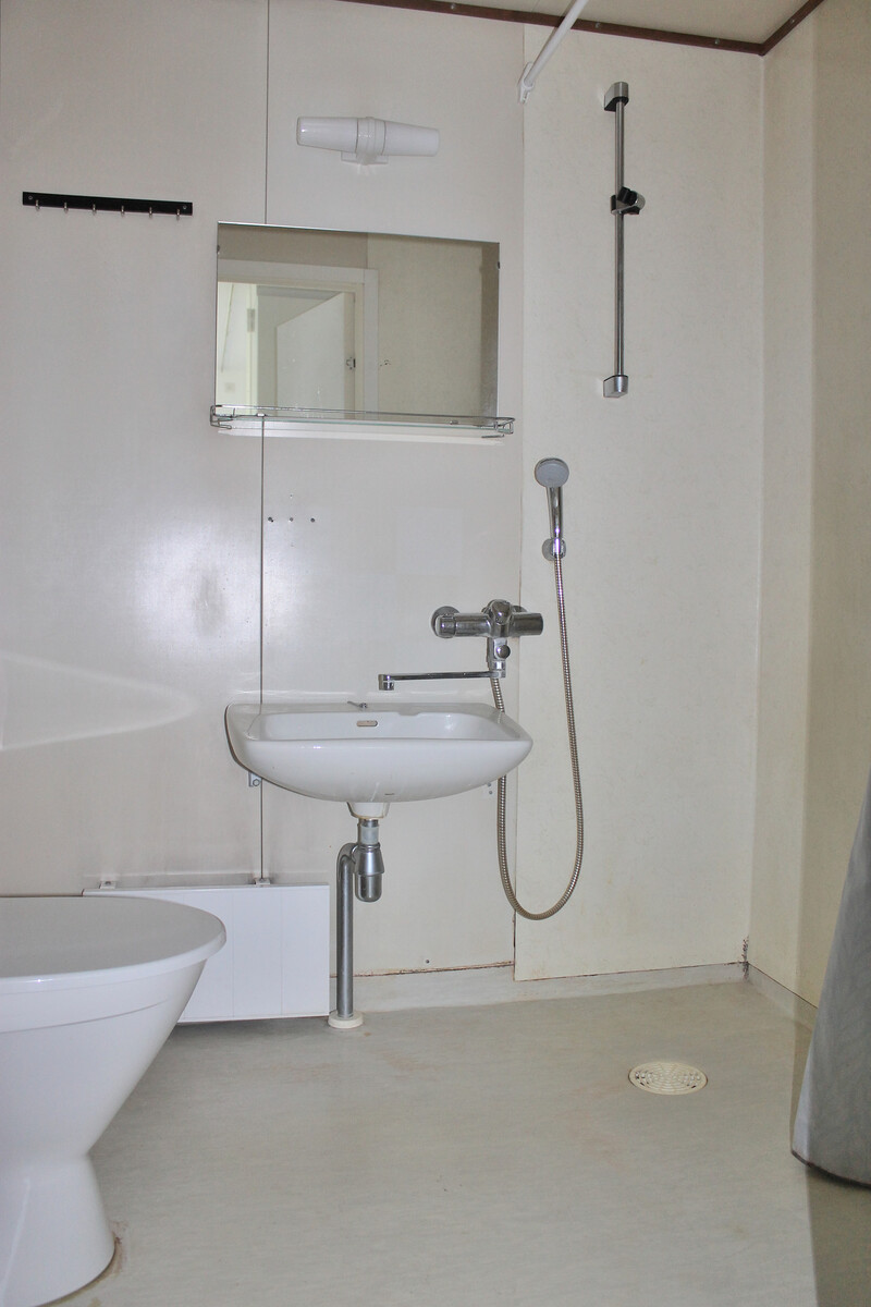 | Kuvaus | Seinät muovitapettia, lattia muovimattoa. Varustus; wc, suihku, peili, pesukoneliitäntä. |