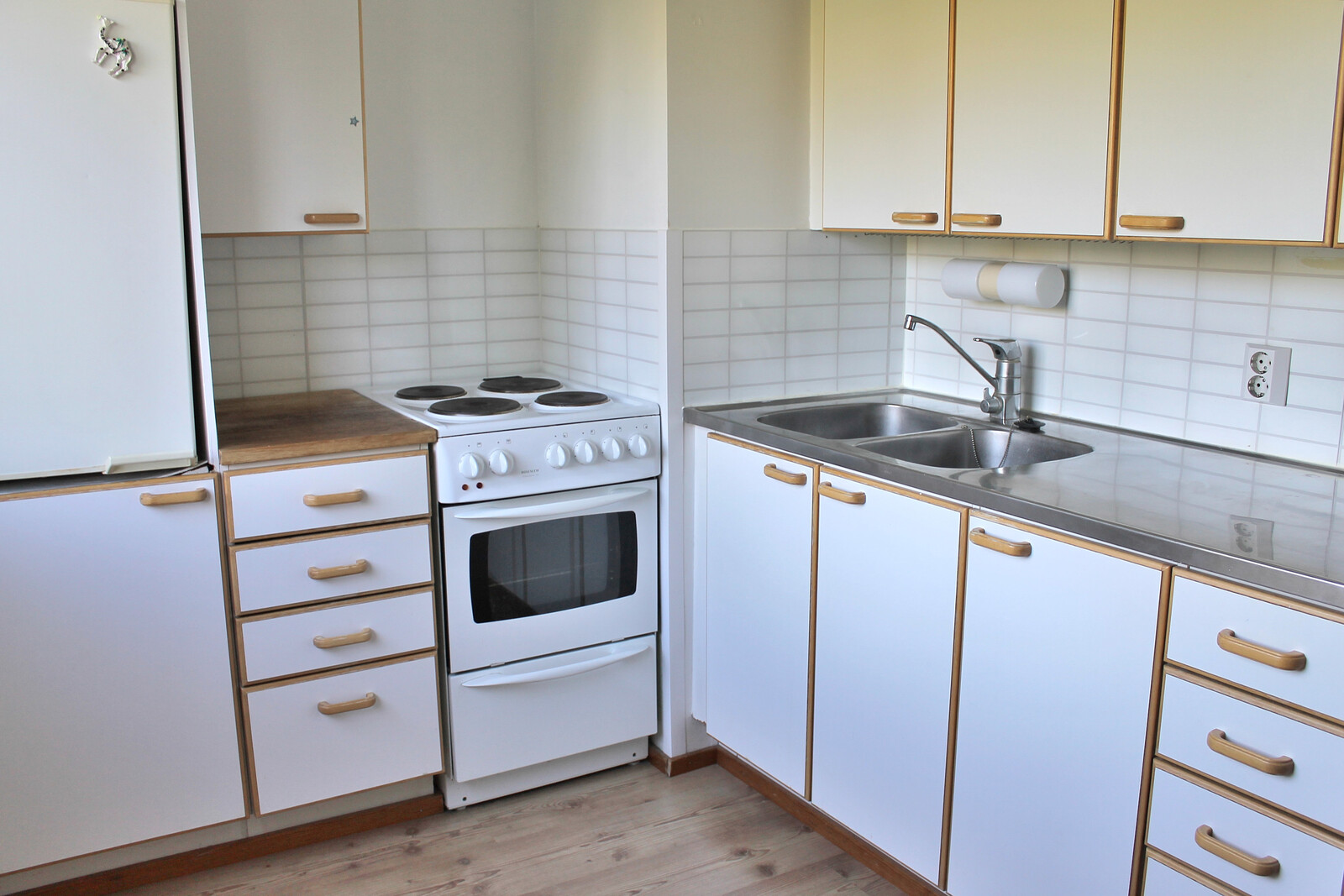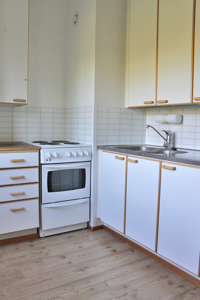 | Kuvaus | Maalatut seinäpinnat, laminaattilattia. Varustus; jääkaappi, sähköliesi, kaapistot. |