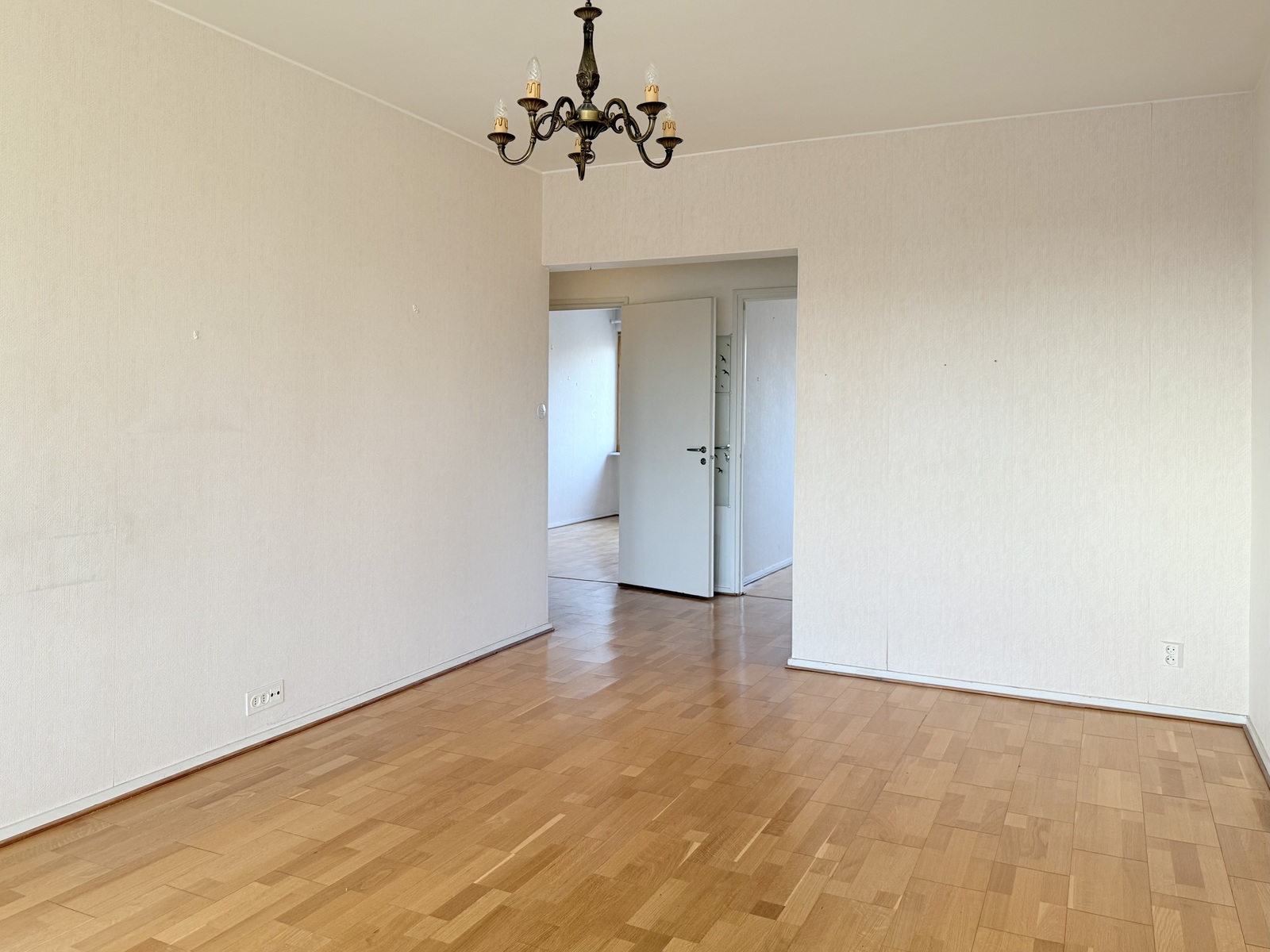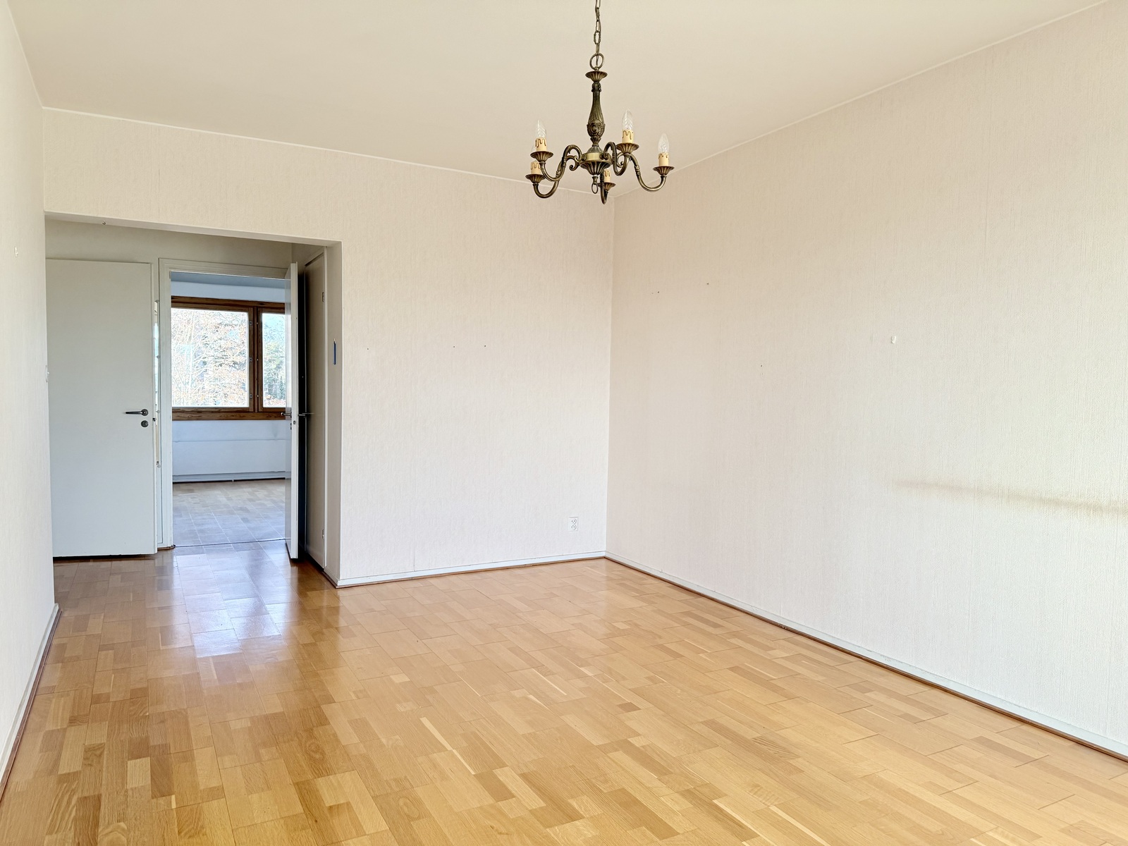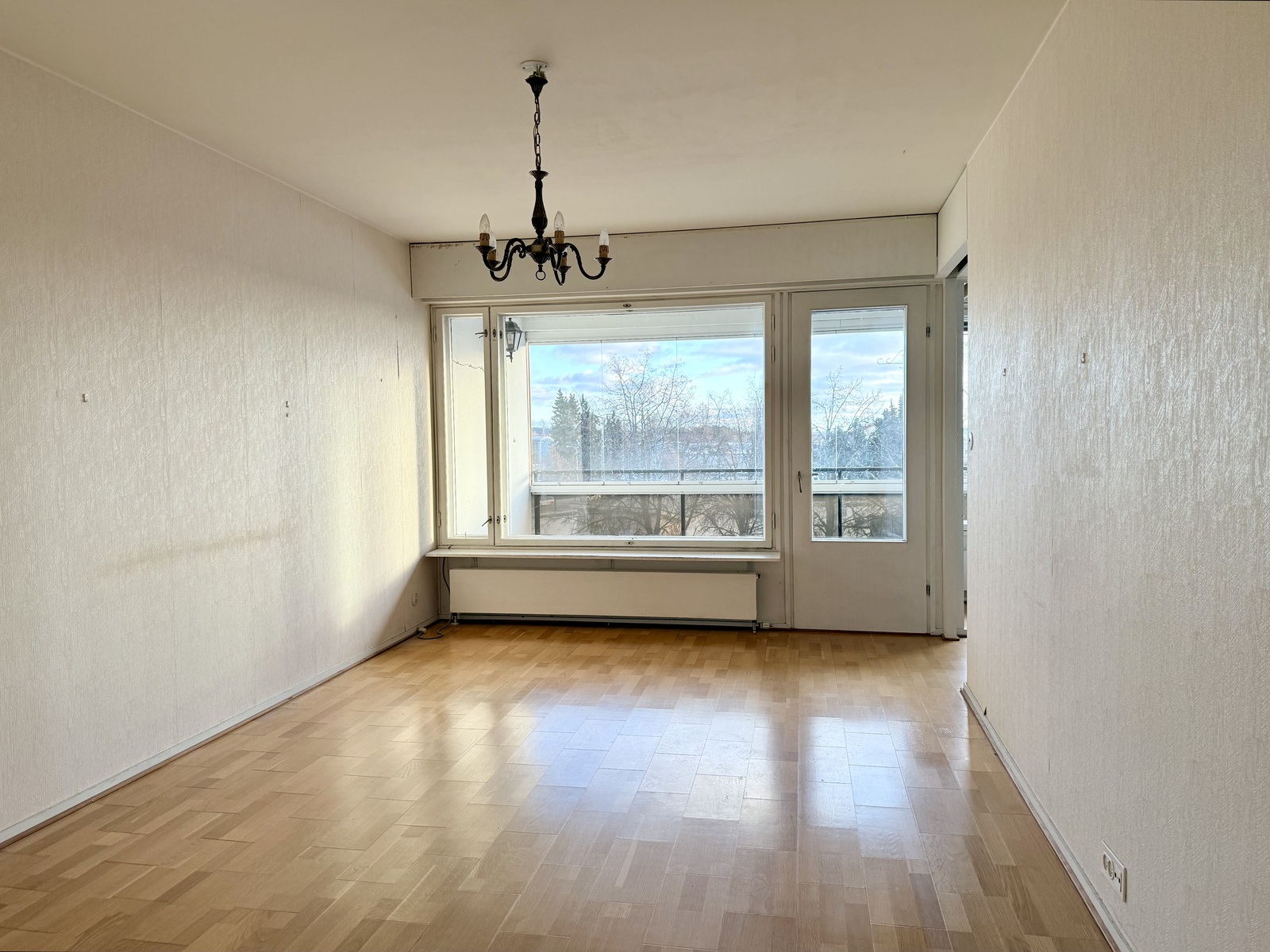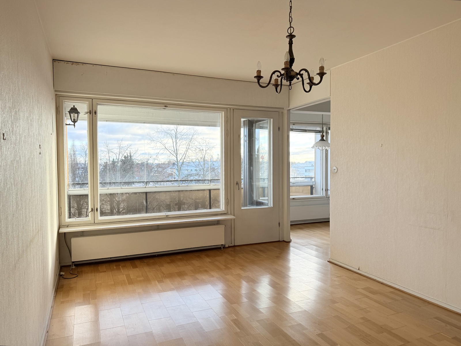 | Kuvaus | Valoisa, vaaleasävyinen olohuone. Vaaleat, tapetoidut seinät. Parkettilattia. Käynti tilavalle, lasitetulle parvekkeelle. |