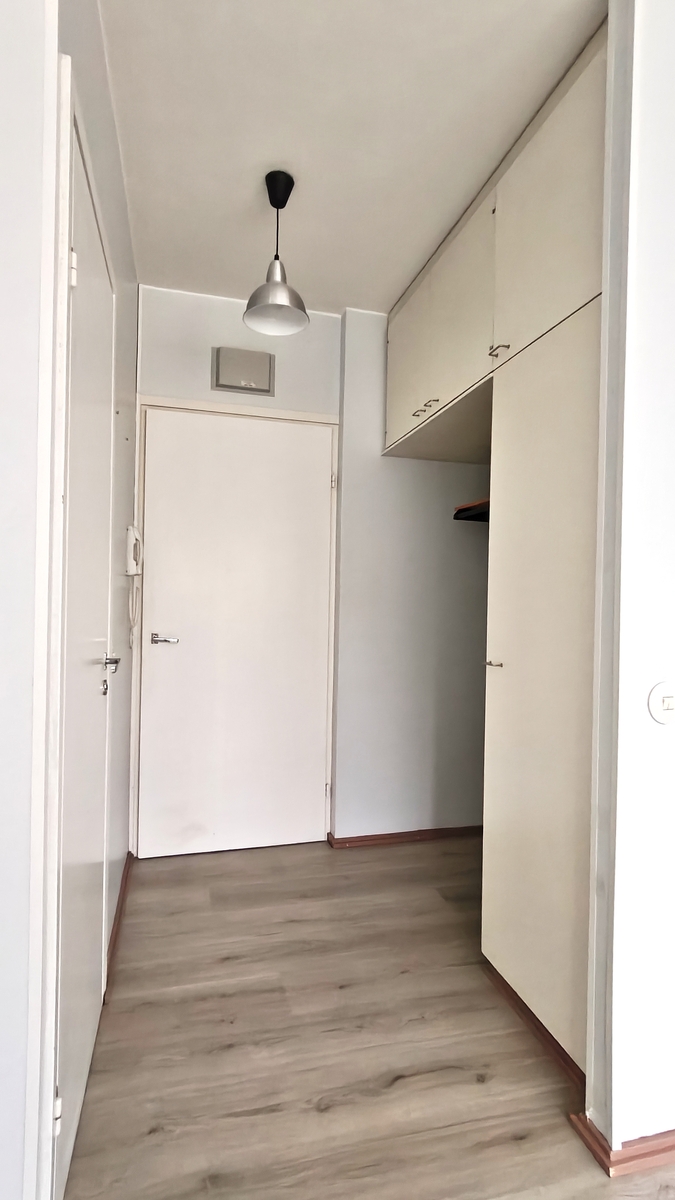 Tilojen kuvaus Eteinen, jossa on kaapistoja. Vaatehuone.