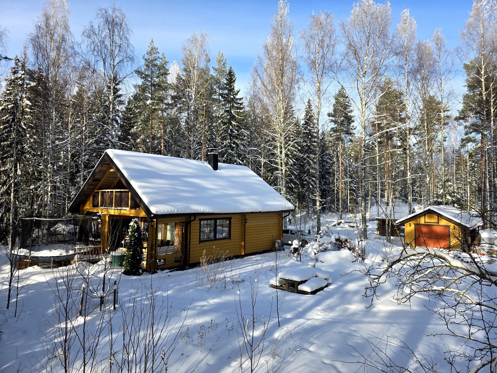 Pihan talousrakennuksissa on hyvät harraste- ja säilytystilat. Aurinkoisella paikalla olevassa kasvihuoneessa ja kasvimaalla kasvavat kesän herkut ruokapöytään.