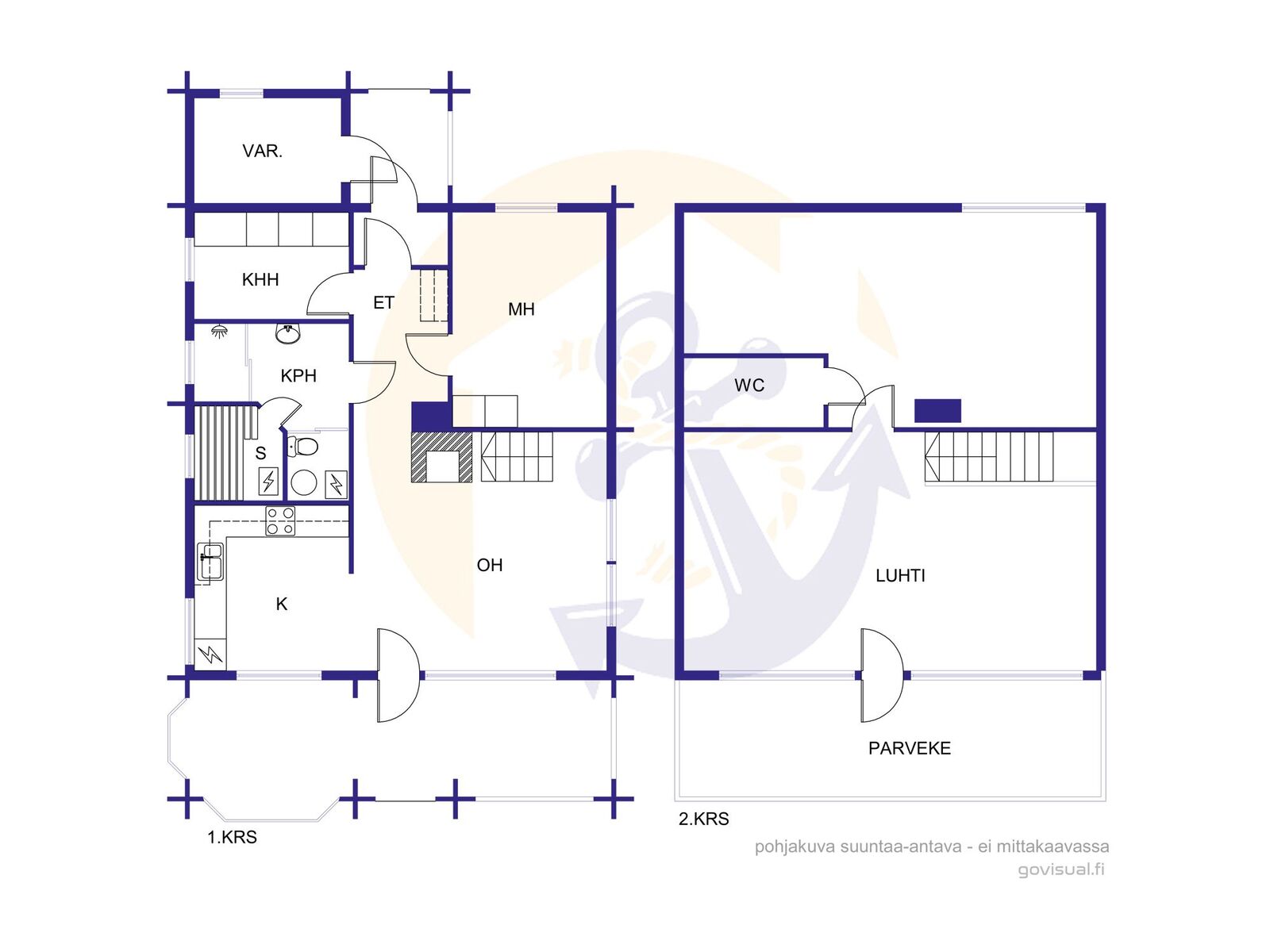 | Kuvaus | Kaksi wc:tä, toinen yläkerrassa ja toinen kph:n yhteydessä alakerrassa. |