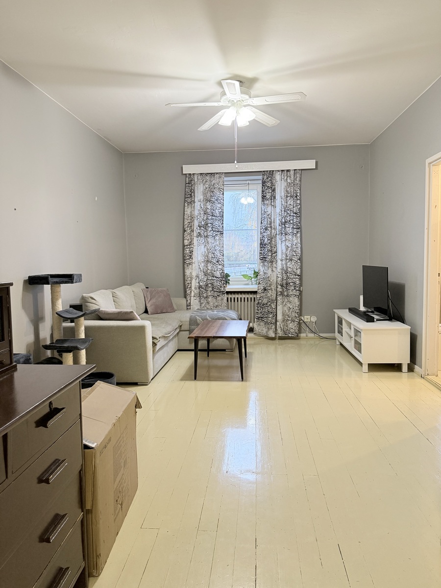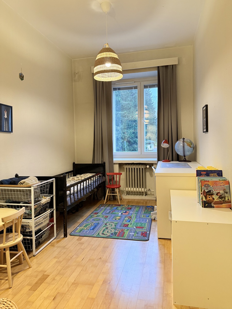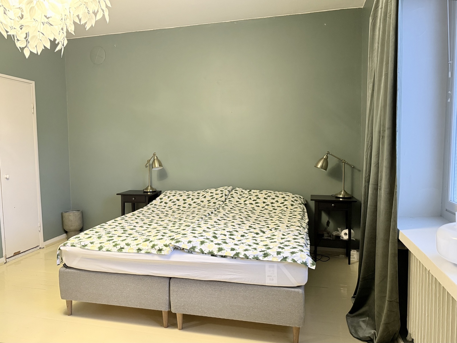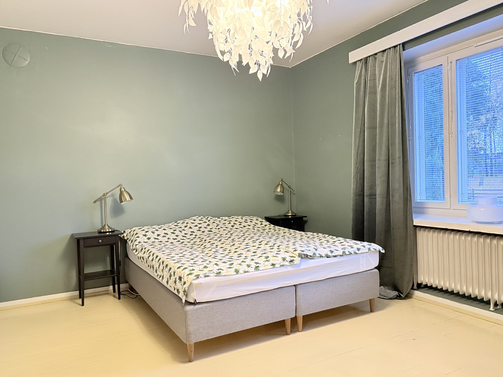 Kuvaus Huoneistossa on kaksi makuuhuonetta, toinen makuuhuoneista on suuri. Molemmissa makuuhuoneissa maalatut seinät. Suuressa makuuhuoneessa vaalea, maalattu lautalattia, pienessä huoneessa parkettilattia.