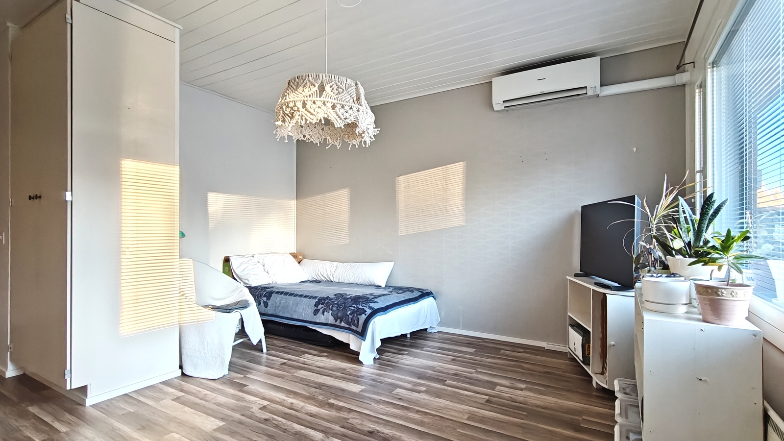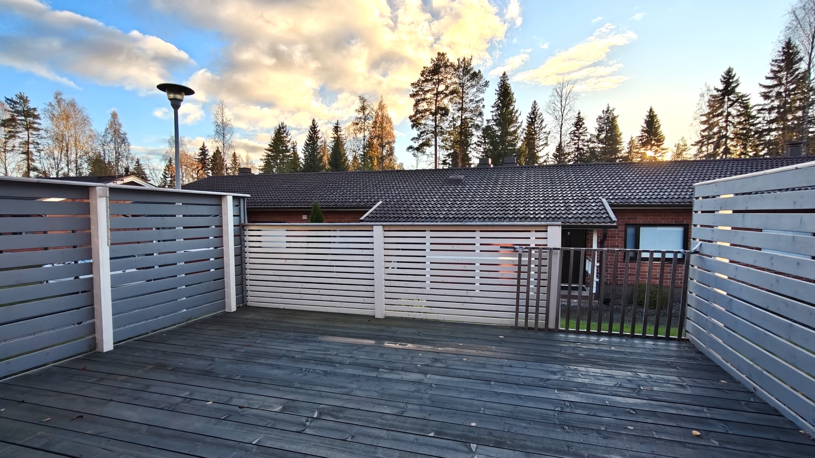 Siistikuntoinen, saunallinen rivitalon päätyhuoneisto Käpykankaalla. Pikkukoti, jossa neliöt käytetty tehokkaasti. Asunnossa on hyvin säilytystilaa; reilusti kaapistoja ja lisäksi varasto aivan ulko-oven edessä. Olohuoneesta käynti koko takapihan kokoiselle terassille. Vuokra 395 + vesi ja sähkö. Sähkölämmitys, ilmalämpöpumppu. Vapautuu 1.12. Tule tutustumaan tähän pikkukotiin!