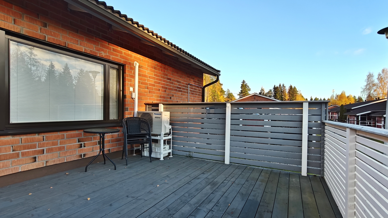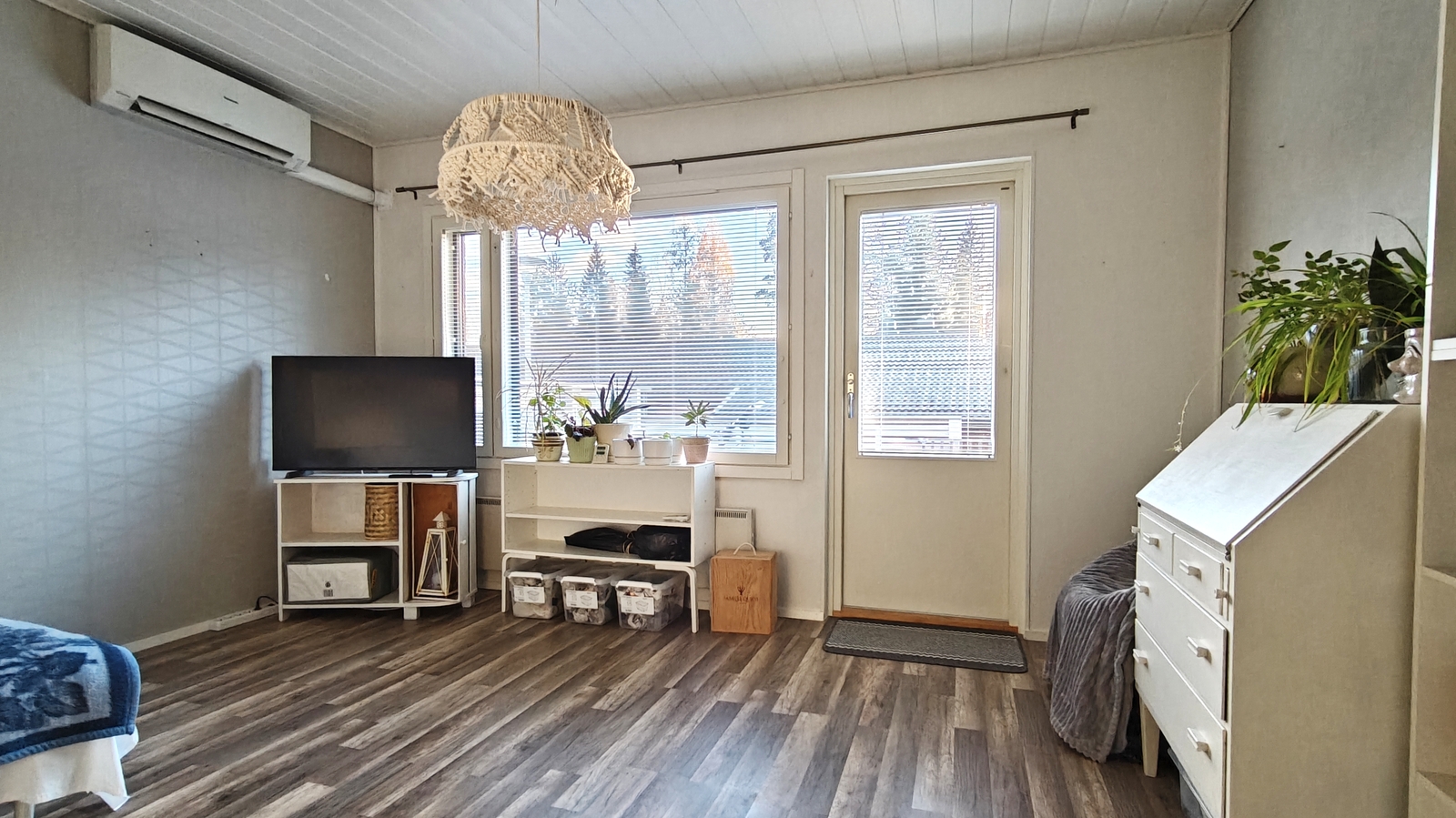 | Kuvaus | Olohuoneesta käynti aurinkoiselle terassille. Seinäpinnat osin maalattu, osin tapetoitu. Laminaattilattia. |