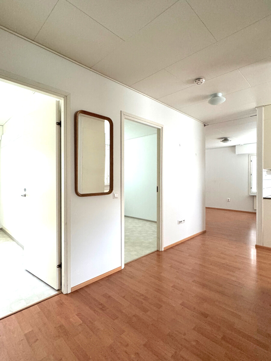 Nyt myytävänä rivitalon päätyhuoneisto aivan palvelujen äärellä. Kaikki tarvittavat lähipalvelut pienen kävelymatkan päässä. Ja jos tarvitset asumista tukevia palveluja, nekin aivan vieressä saatavilla. Valoisa huoneisto, jossa kaksi erillistä makuuhuonetta ja oma sauna. Avarat tilat, jotka soveltuvat myös liikuntaesteelliselle hyvin. Heti vapaa!