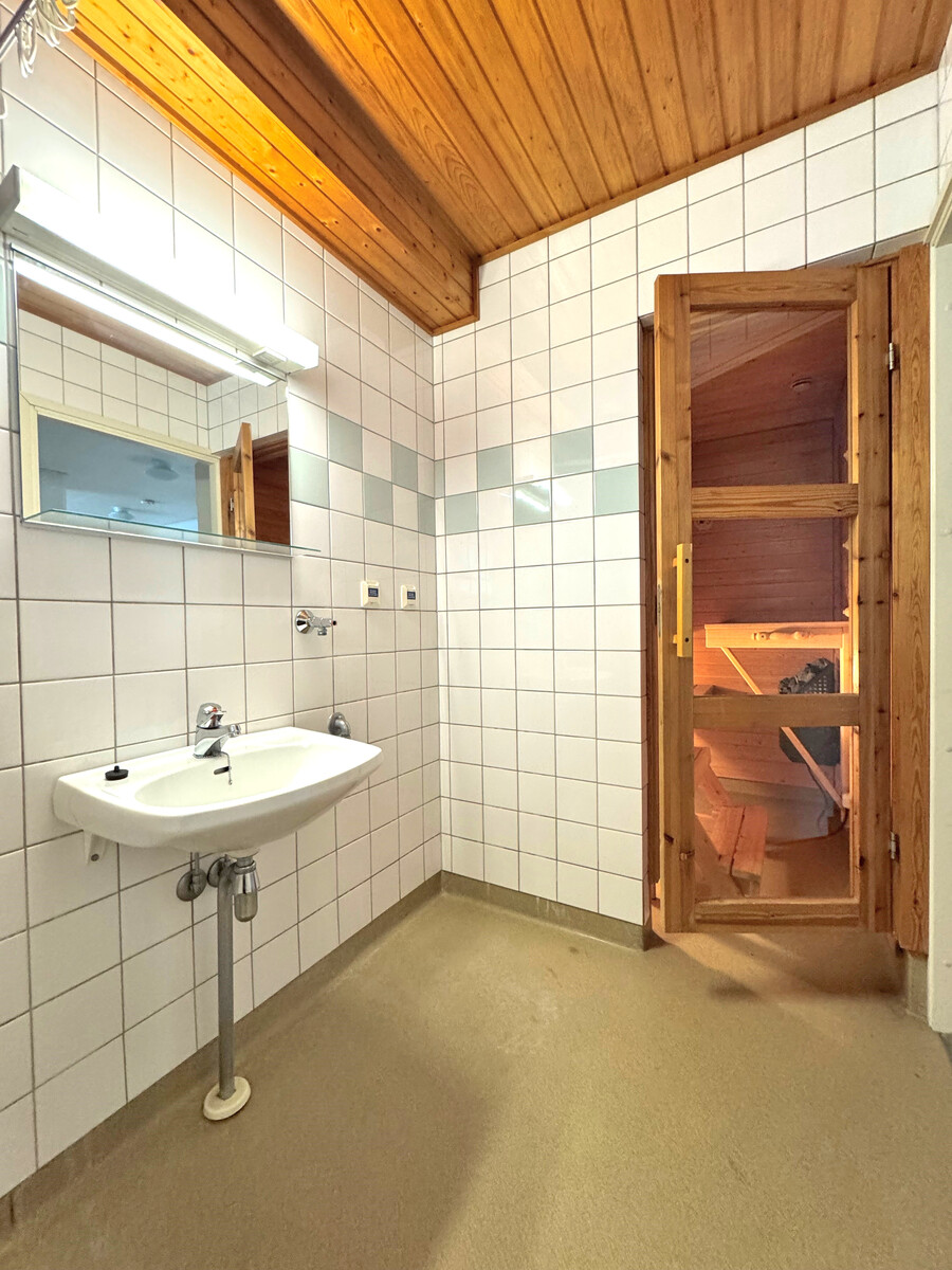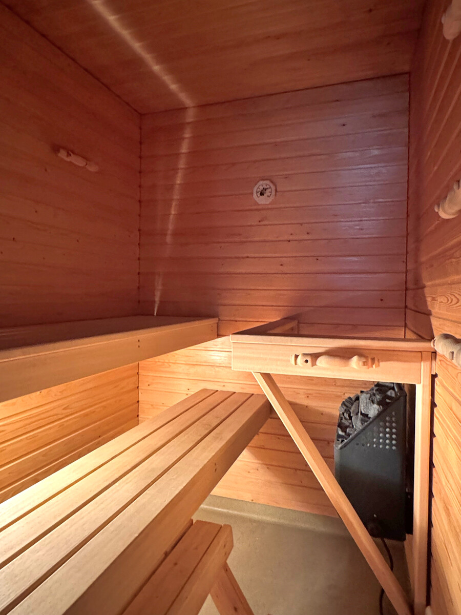 Kuvaus | Sähkösauna. Lattia muovimattoa, seinät paneeli. |