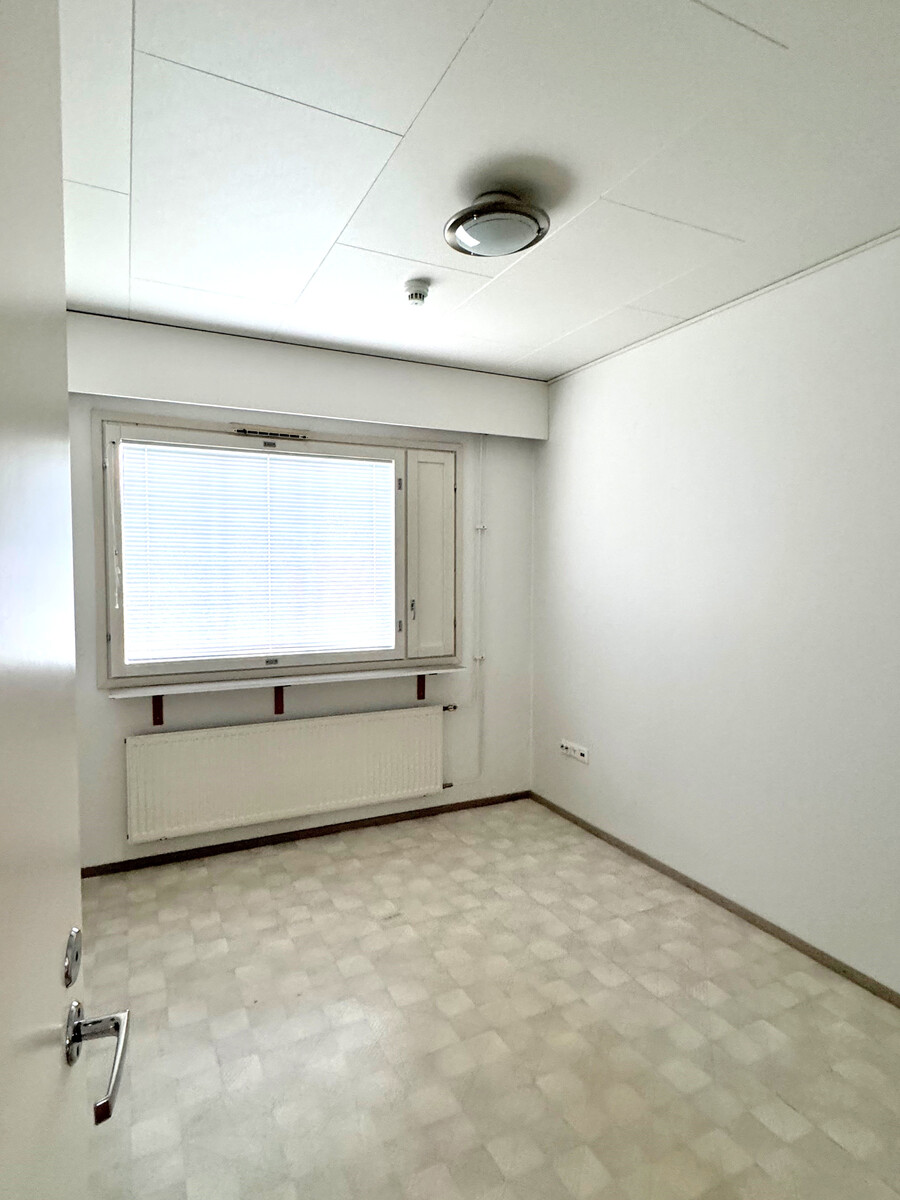 Kuvaus | Kaksi tilavaa makuuhuonetta, joissa säilytykseen kaapistot. Lattia muovimattoa, seinät maalattu. |