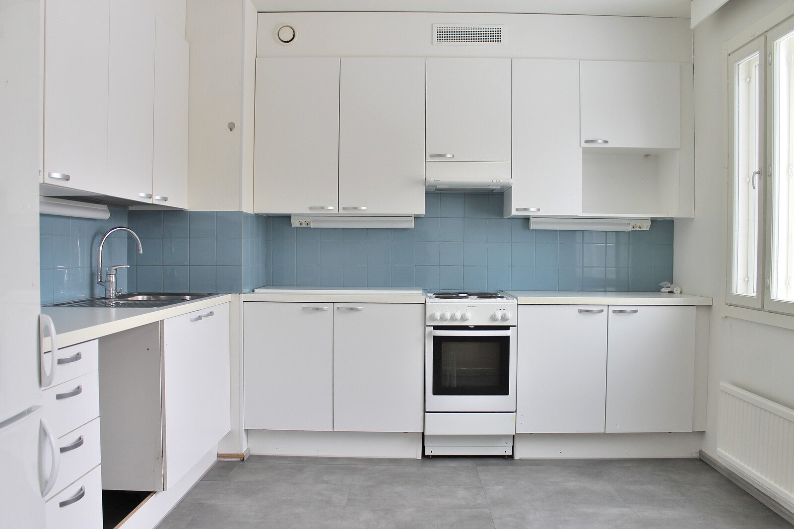 | Kuvaus | Maalatut seinäpinnat, laminaattilattia. Varusteina jääkaappi/pakastin, sähköliesi, liesituuletin, varattu paikka astianpesukoneelle. |
