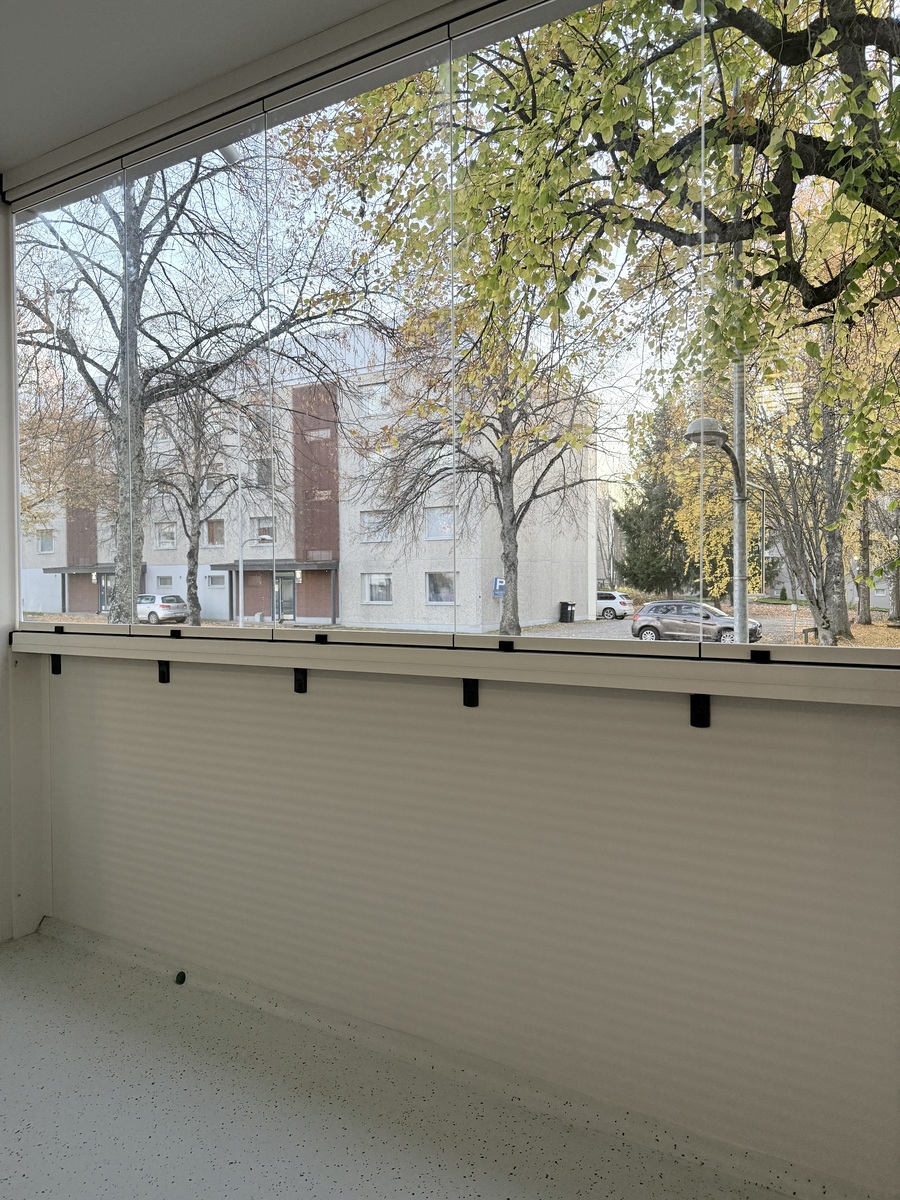 Parvekkeen kuvaus lasitettu, ulostyönnetty