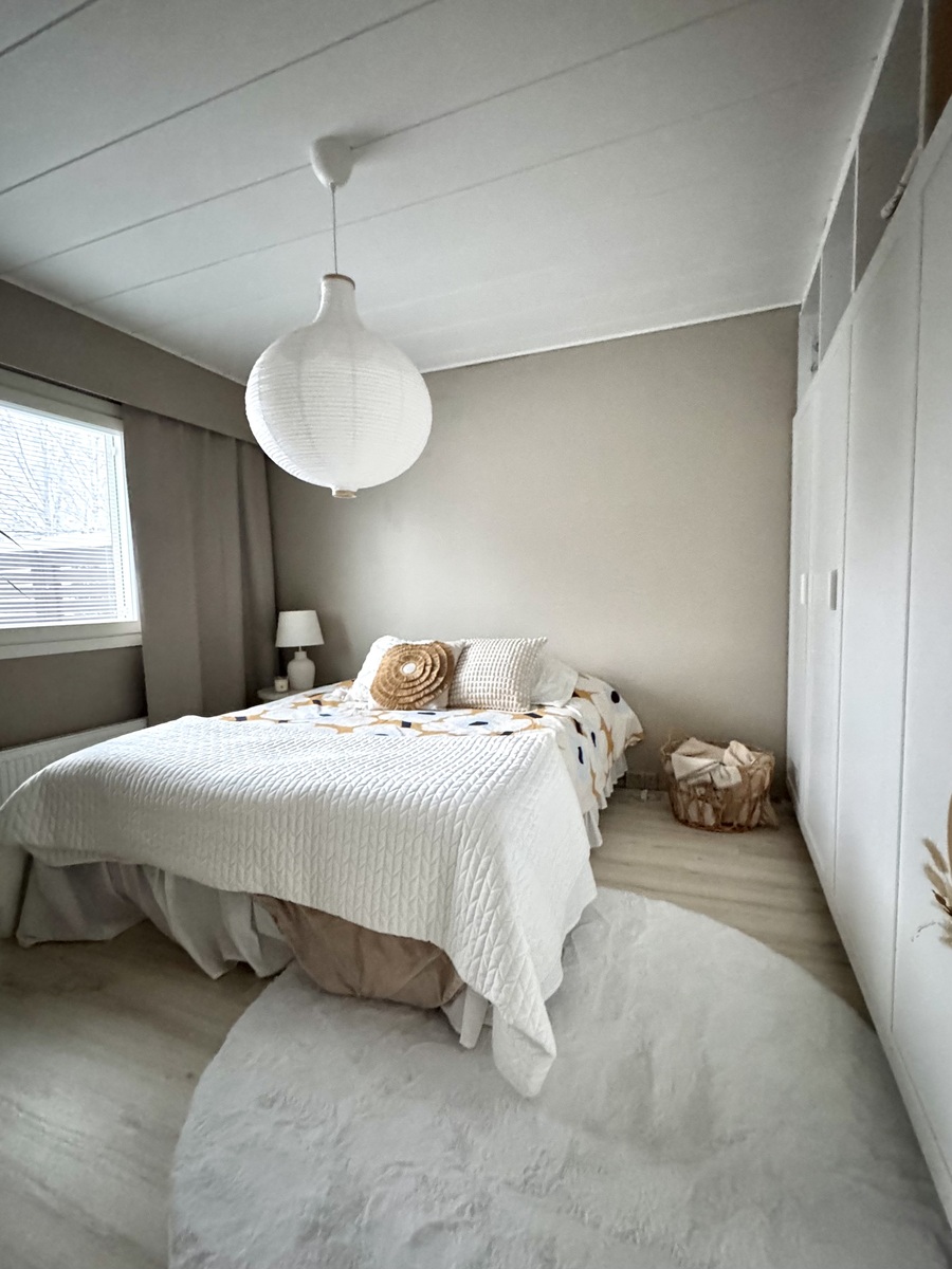 | Kuvaus | Kaksi erillistä makuuhuonetta. Toisessa mh:ssa runsaasti kaapistoa ja toisessa vaatehuone. Lattiat laminaattia, seinät maalia/tapettia. Makuuhuoneen ja asunnon kaikki väliovet uusittu. |