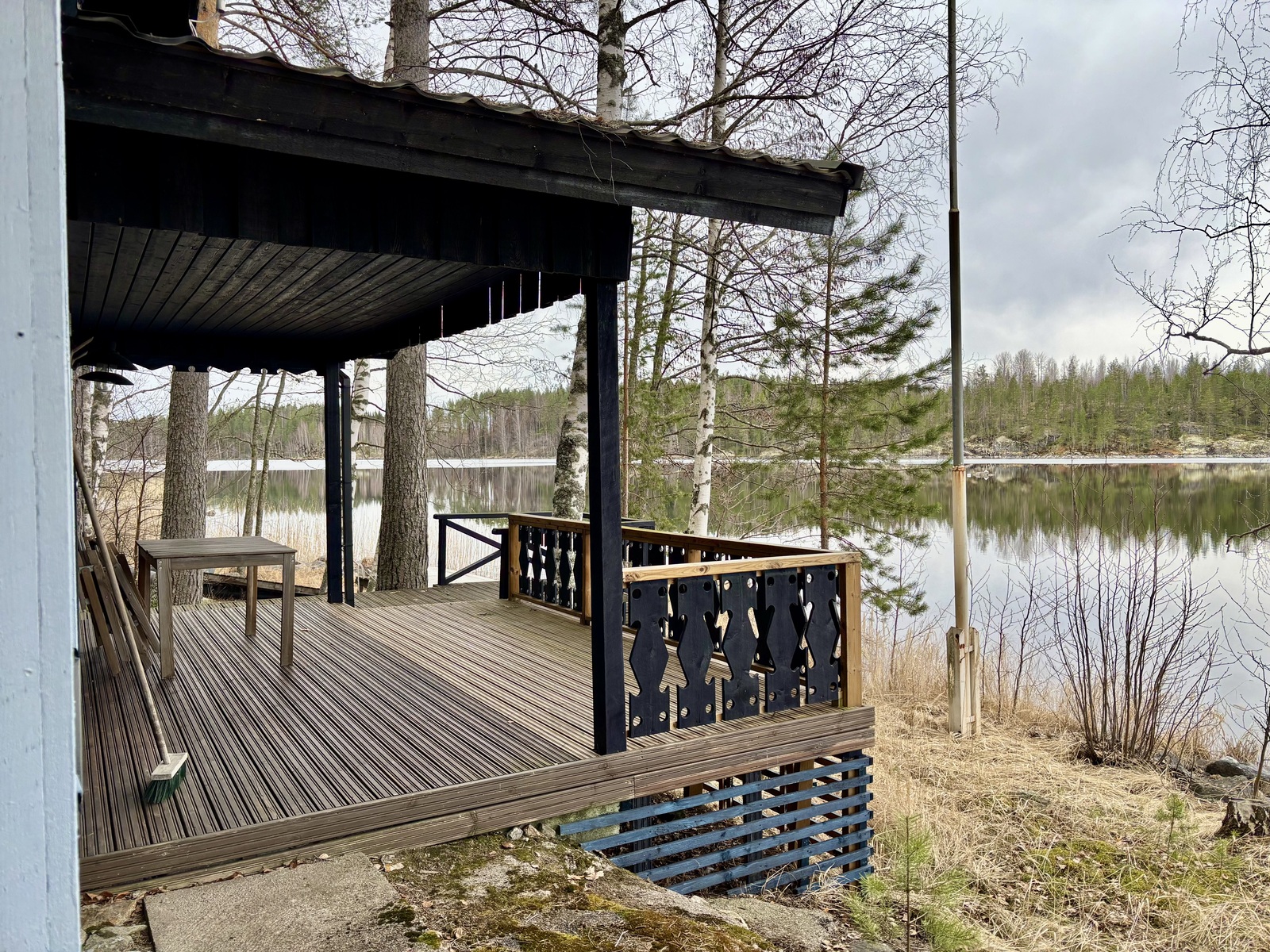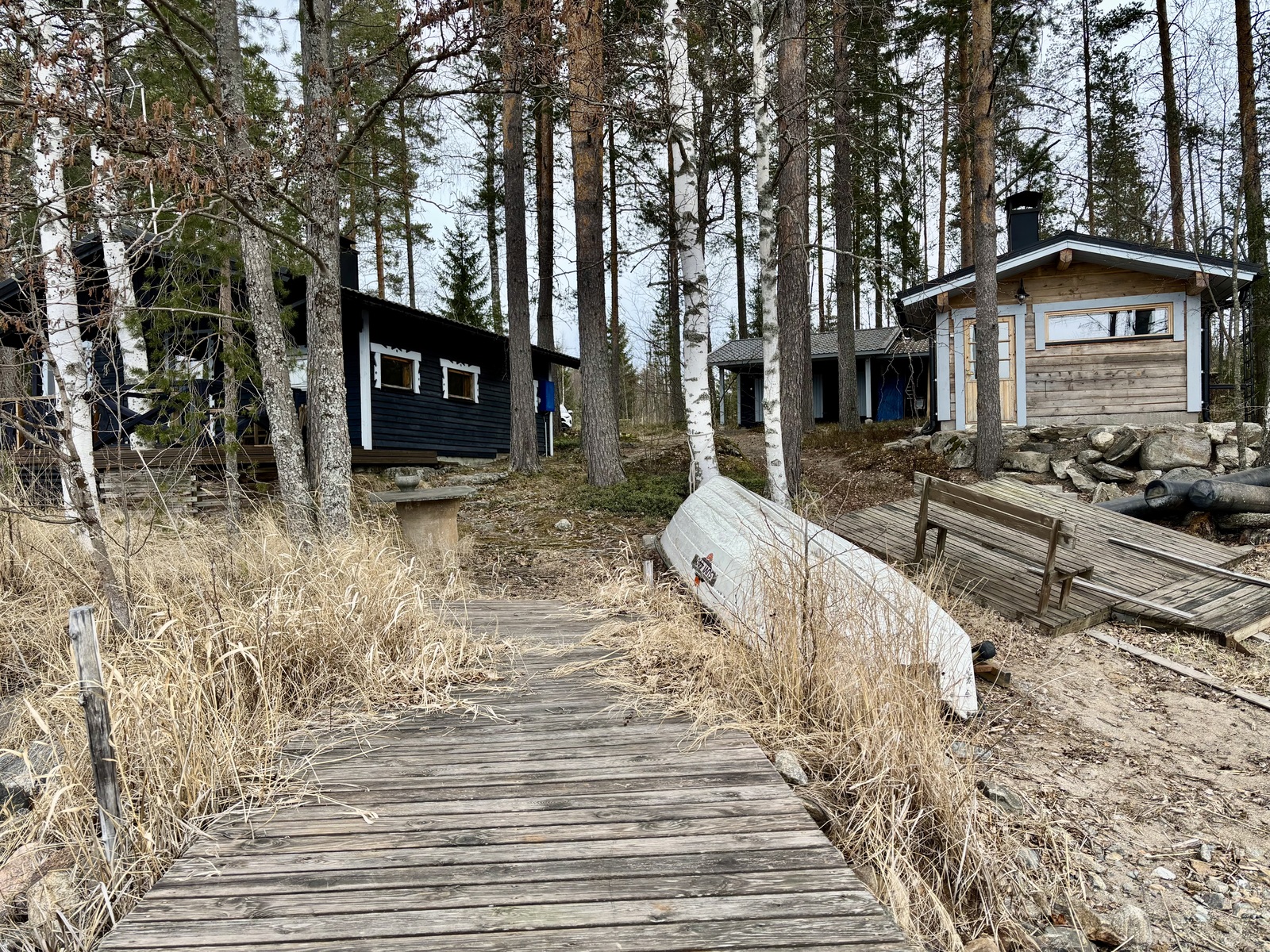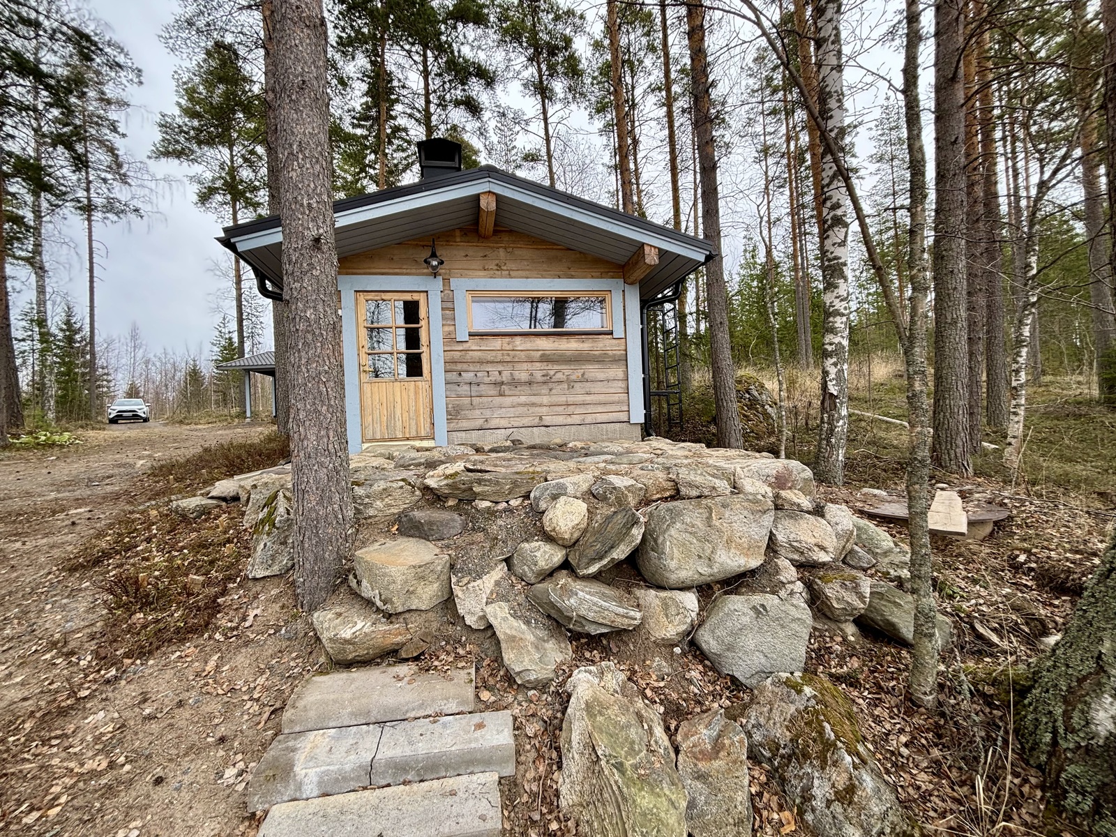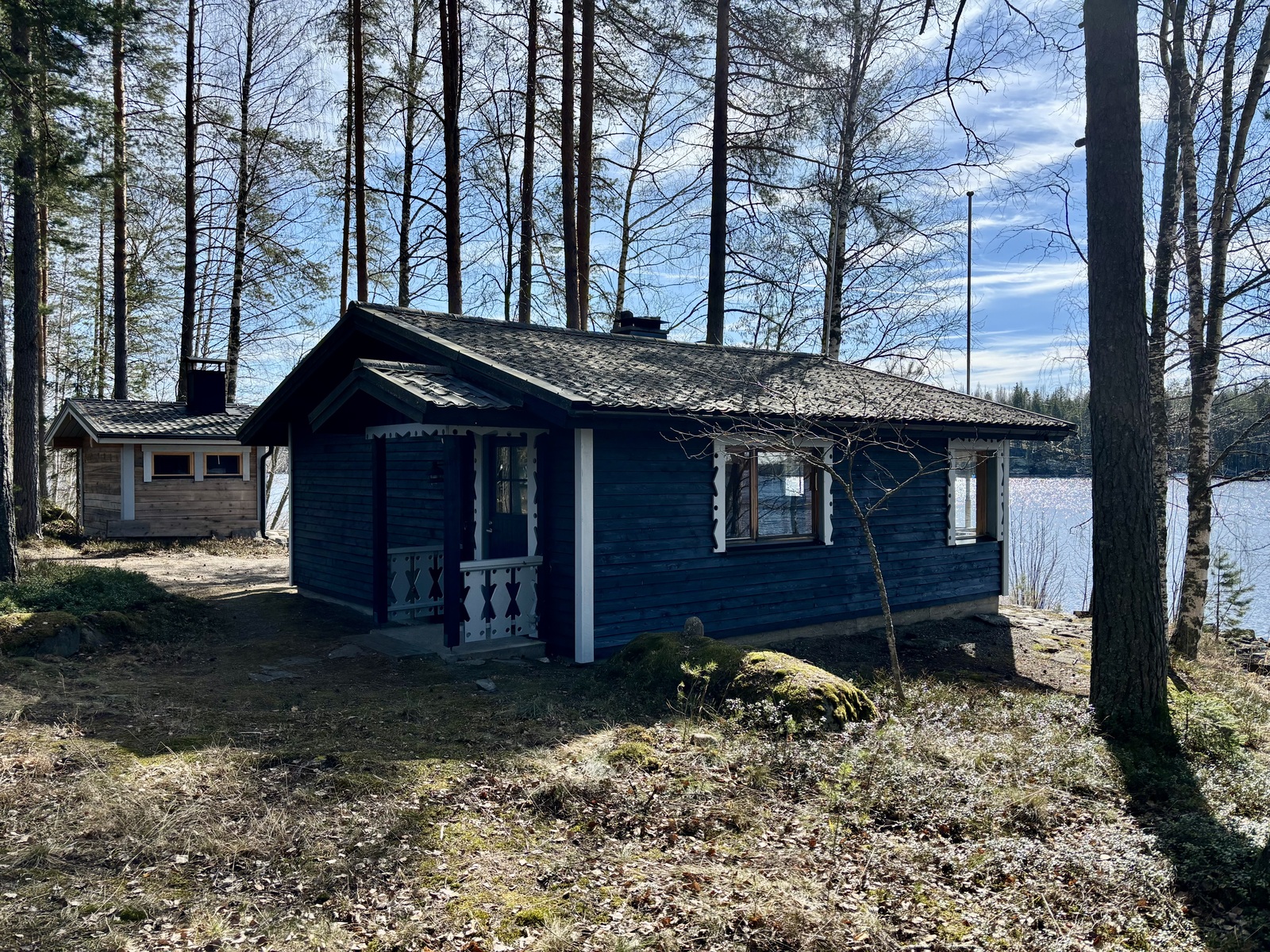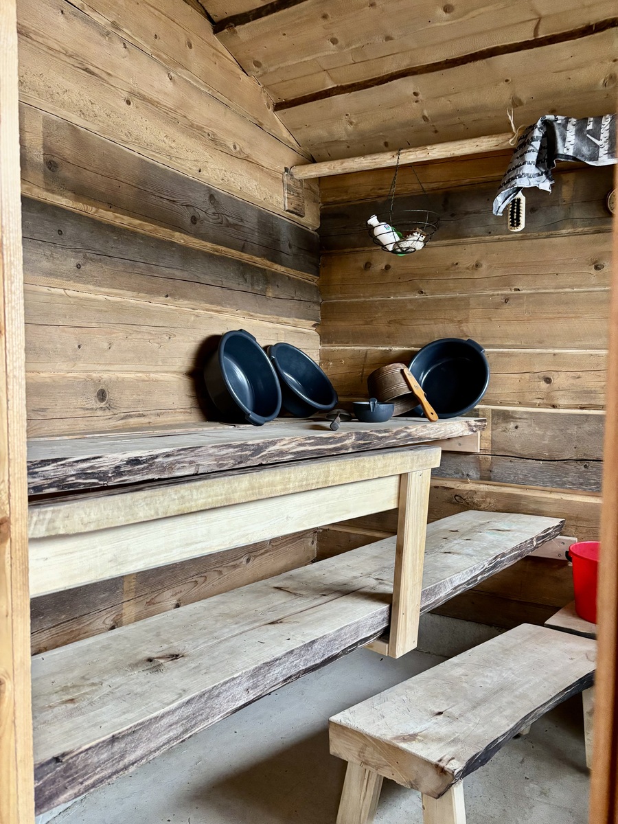 | Kuvaus | Vuonna 2023 rakennettu sauna, 7 tuuman kuusihirsistä käsin veistetty ulkosauna n. 9 m², jossa pukuhuone ja sauna. Saunassa vedenlämmitykseen pata ja kiukaana Sydänkiuas (https://sydänkiuas.fi) ja panoraamaikkuna järven suuntaan. |