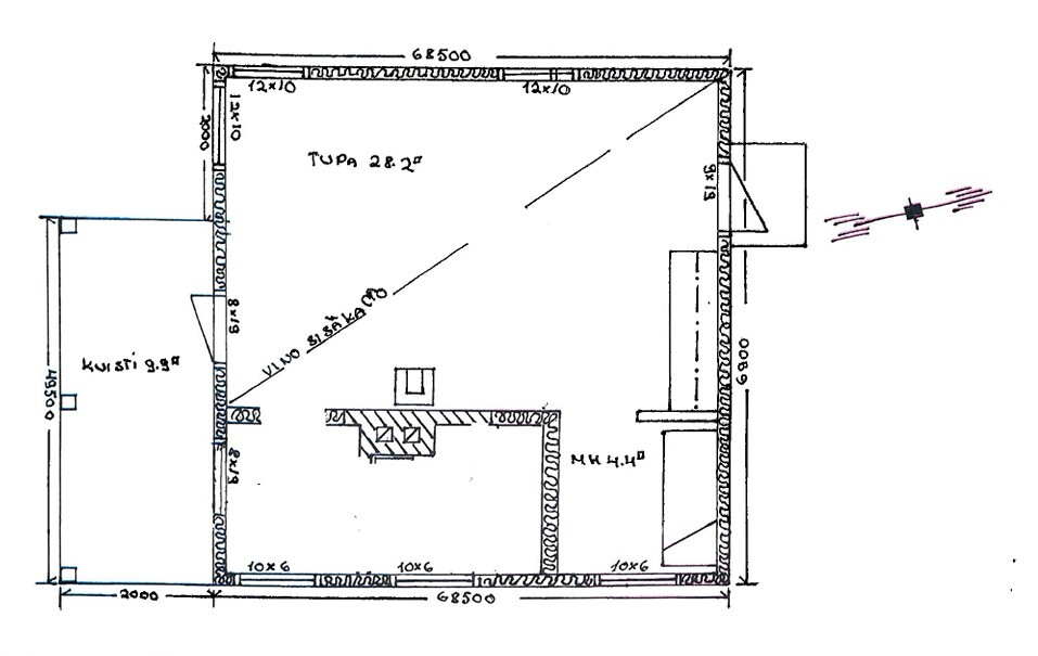 | Kuvaus | tupa/keittiö, alkovi, mh, kuisti |