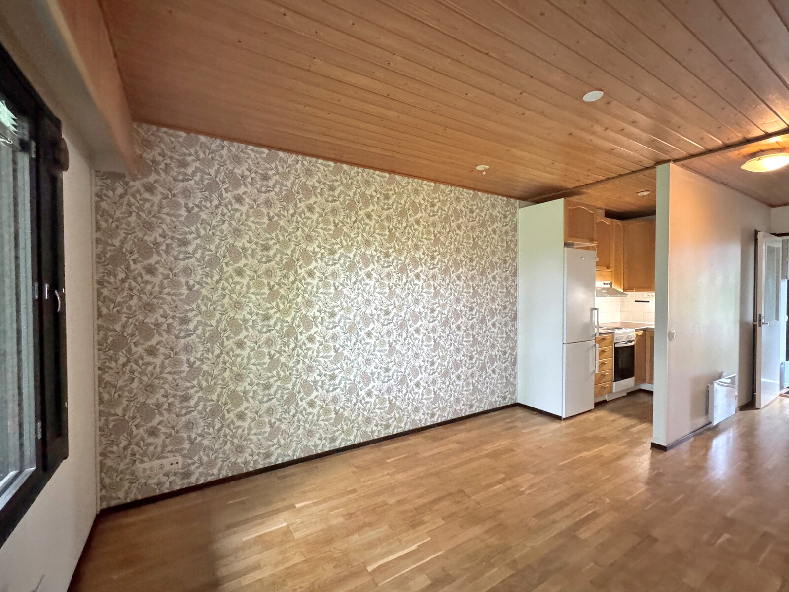 | Kuvaus | Olohuone, josta käynti takapihalle. Lattia parkettia, seinät tapetti/maali. |