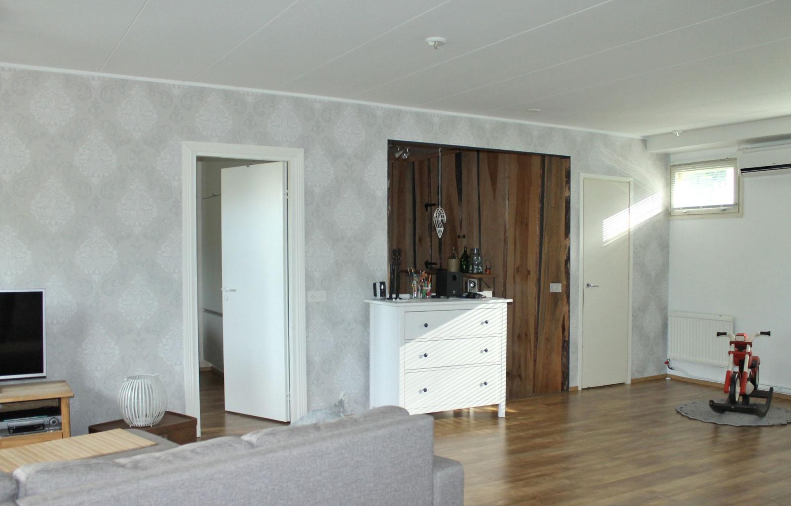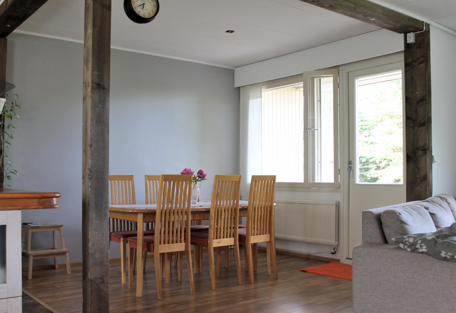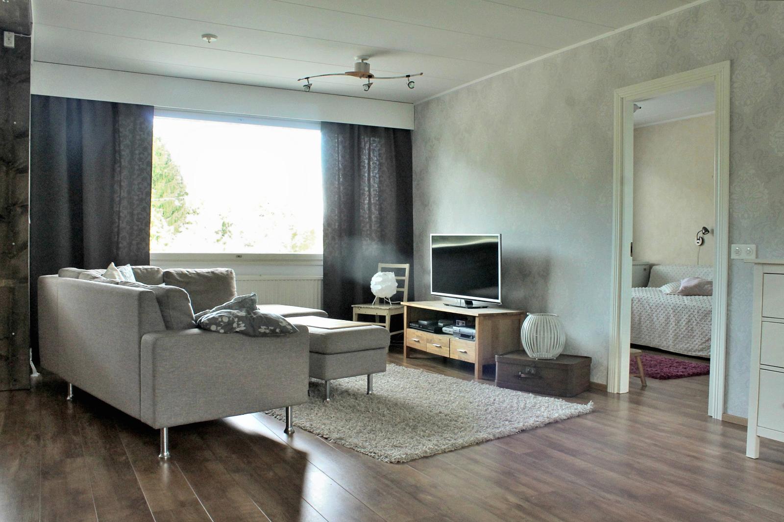 | Kuvaus | Avara läpitalon oleva olohuone, josta myös käynti parvekkeelle. Keittiö ja ruokailutila yhtenäistä tilaa, jota erottaa vain saareke. Tapetoidut seinäpinnat, laminaattilattia. Olohuoneessa ilmalämpöpumppu, jota voi käyttää viilennykseen kesällä. |