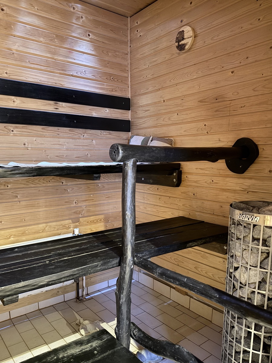 Kuvaus | Paneloidut seinät ja laatoitettu lattia (uusittu v.2003). Sähkökiuas ja lauteet uusittu n.5 vuotta sitten. Kuituvalot |