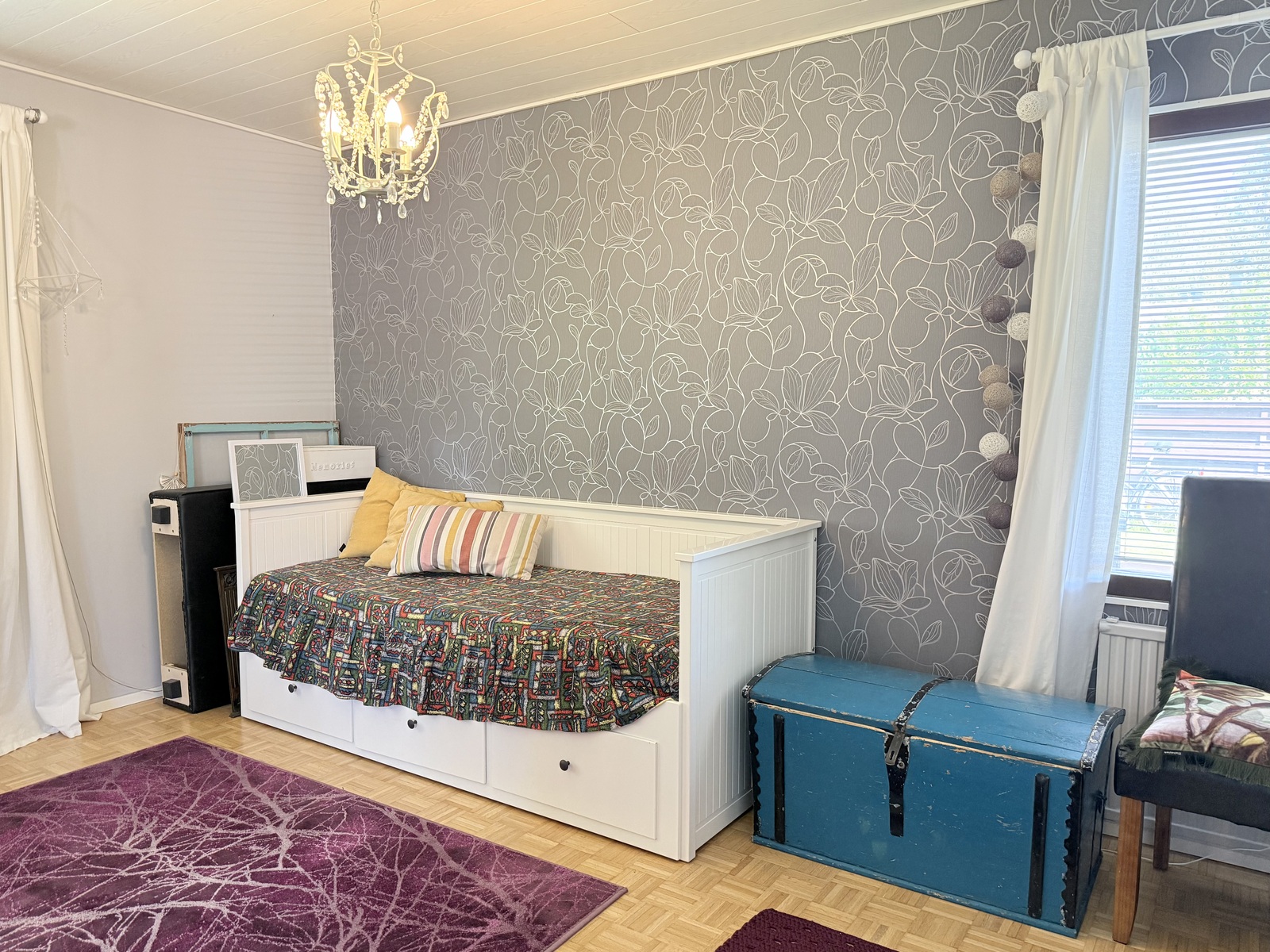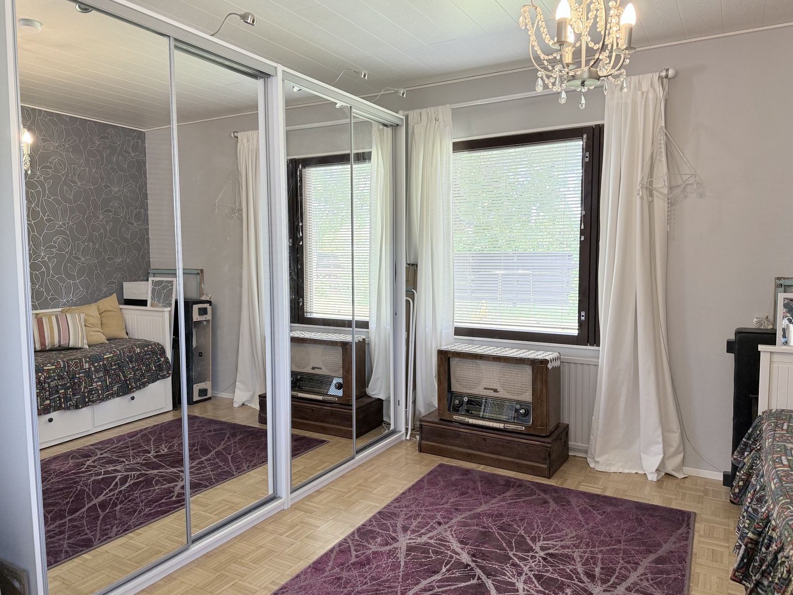 Kuvaus | Kolme makuuhuonetta, joissa kaikissa yksi tapetoitu seinä, muut seinäpinnat maalattu. Kaapistot (yhdessä kaapistossa peililiukuovet) Mosaiikkiparketti kaikissa kolmessa makuuhuoneessa. |