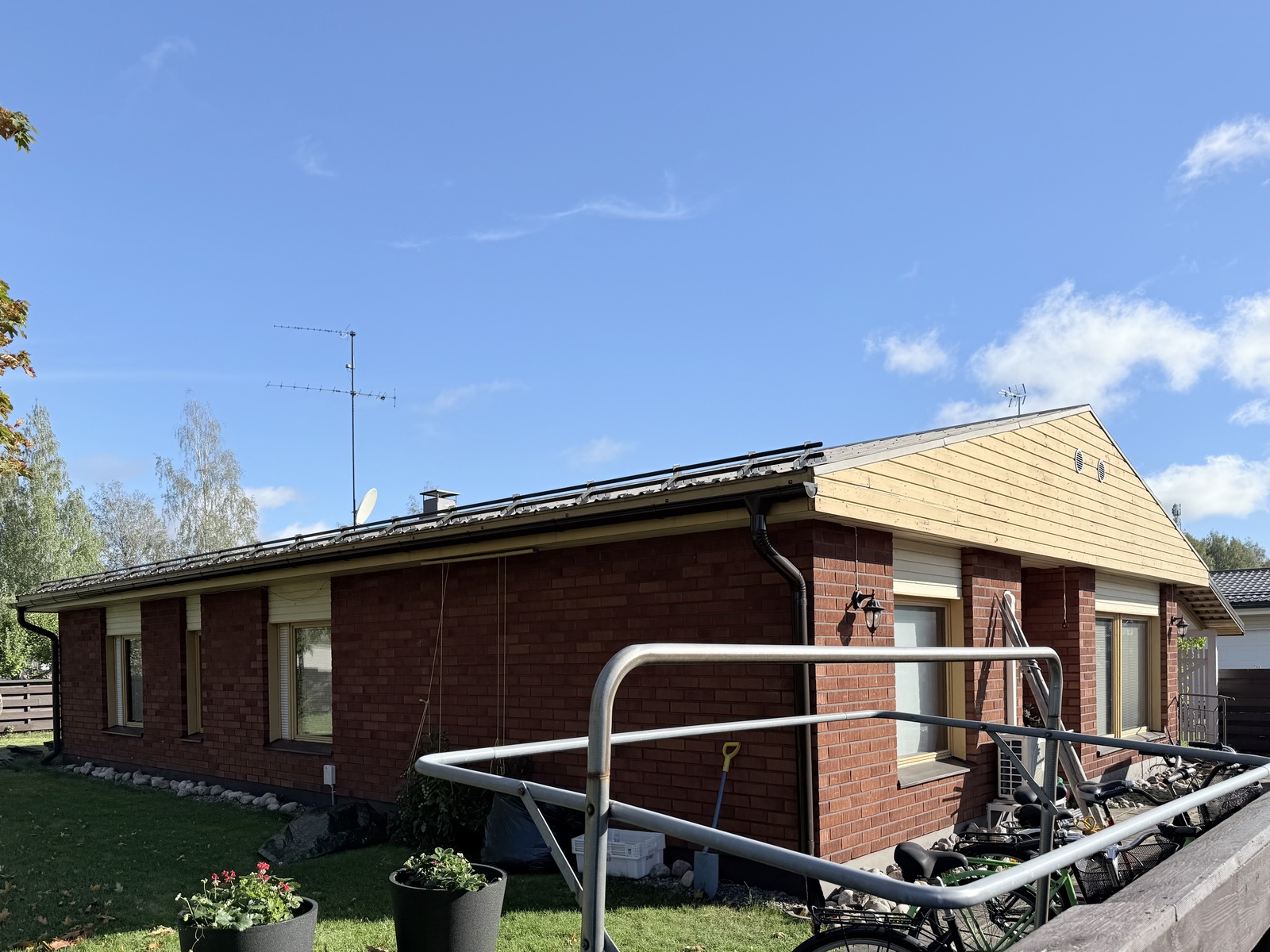 Siistikuntoinen, 1970-luvun lopulla valmistunut, tiiliverhottu omakotitalo omalla, suojaisalla tontilla. Kaukolämpö (lämmönvaihdin uusittu), lisälämmönlähteenä (kesällä viilentäjänä) v.2024 asennettu ilmalämpöpumppu. Asuintiloissa hyväkuntoinen parkettilattia, seinäpinnat uusittu, Kolme makuuhuonetta. Pesuhuone (josta käynti suoraan ulos) kaakeloitu, lattialämmitys. Talon päädyssä v.2024 valmistunut autokatos/varasto. Pihalla erillinen varastorakennus. Varaa aika esittelyyn ja tule tutustumaan tarkemmin.