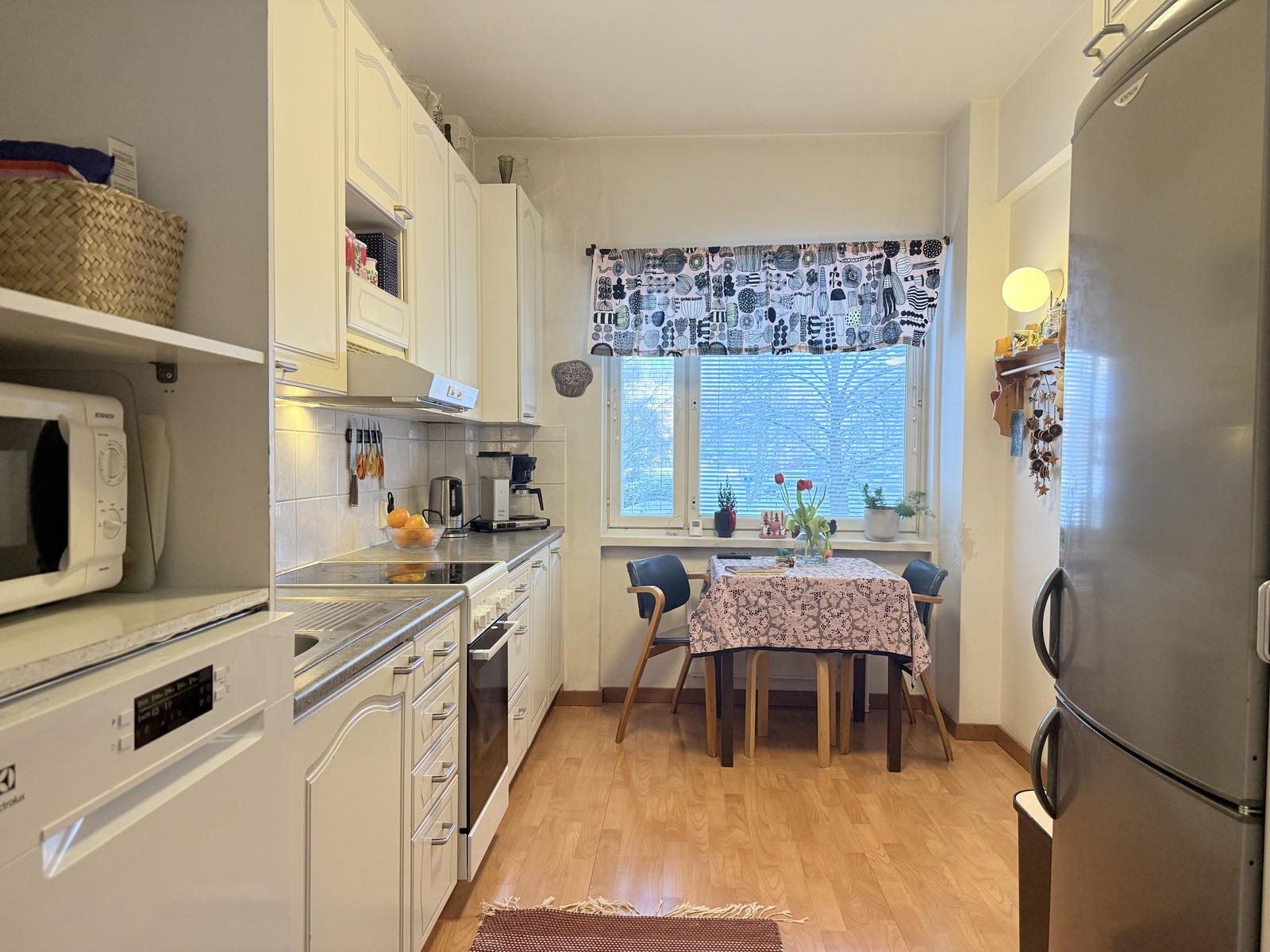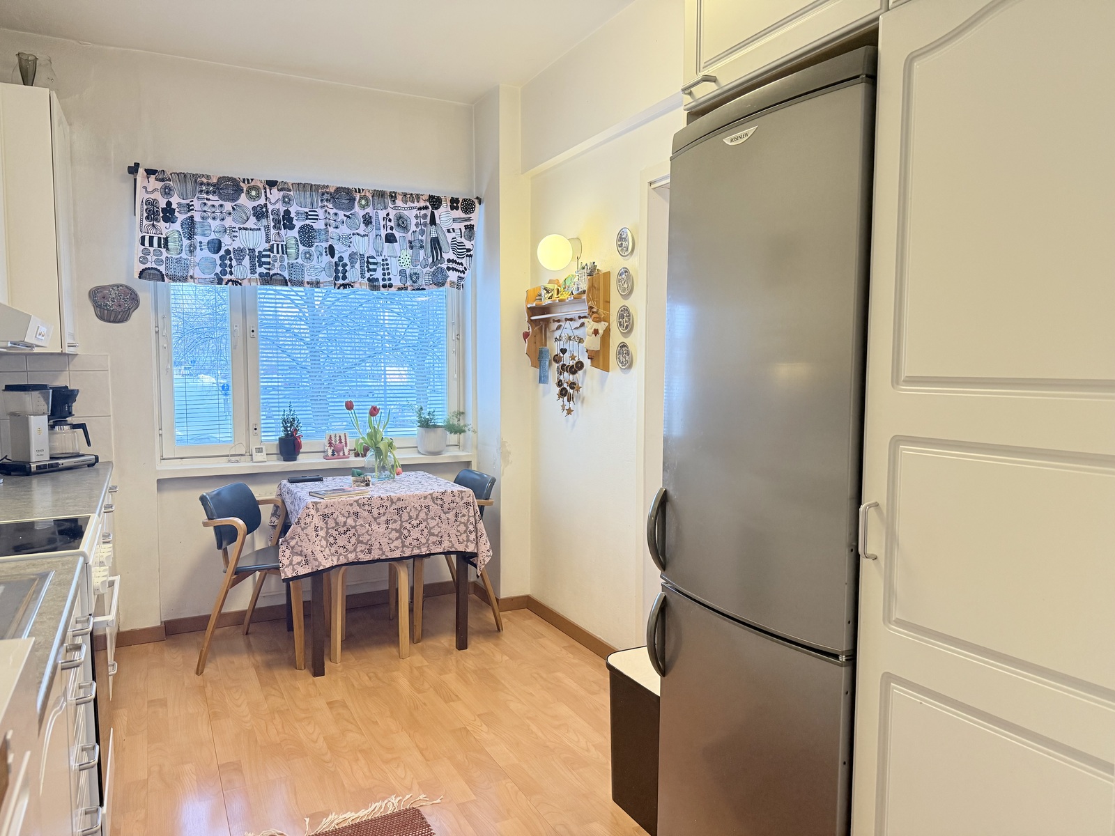 | Kuvaus | Maalatut seinäpinnat ja laminaattilattia. Valkeat kaapistot (välitilan laatoitus uusittu v.1998). Varusteina: jääkaappi/pakastin, keraaminen liesi, liesituuletin (aktiivihiilisuodattimella) ja astianpesukone (2025). |